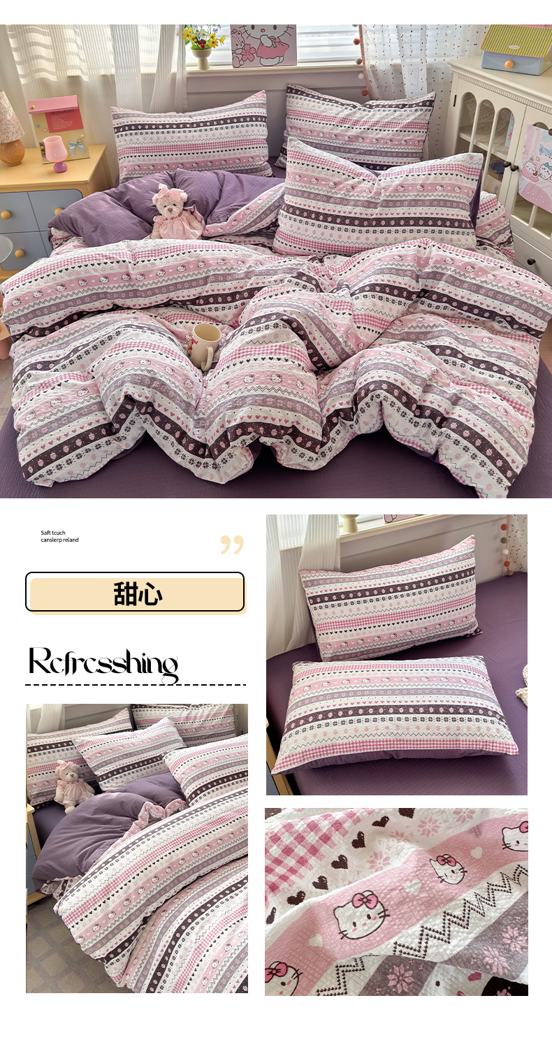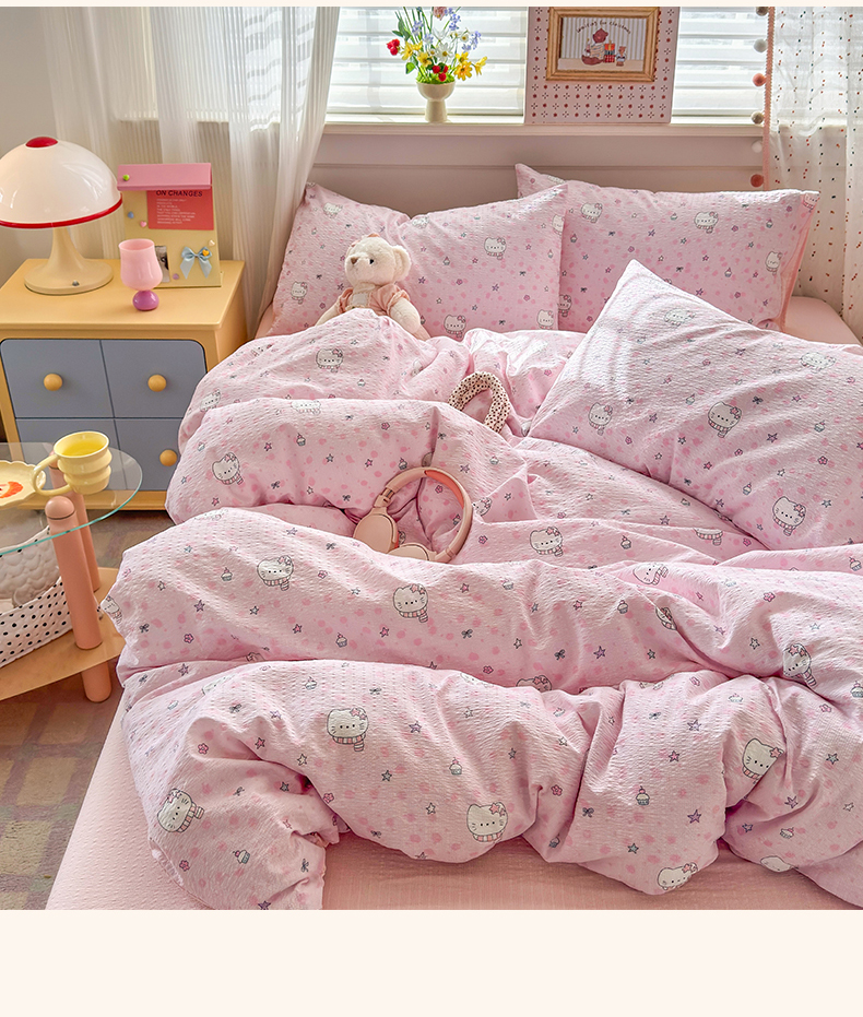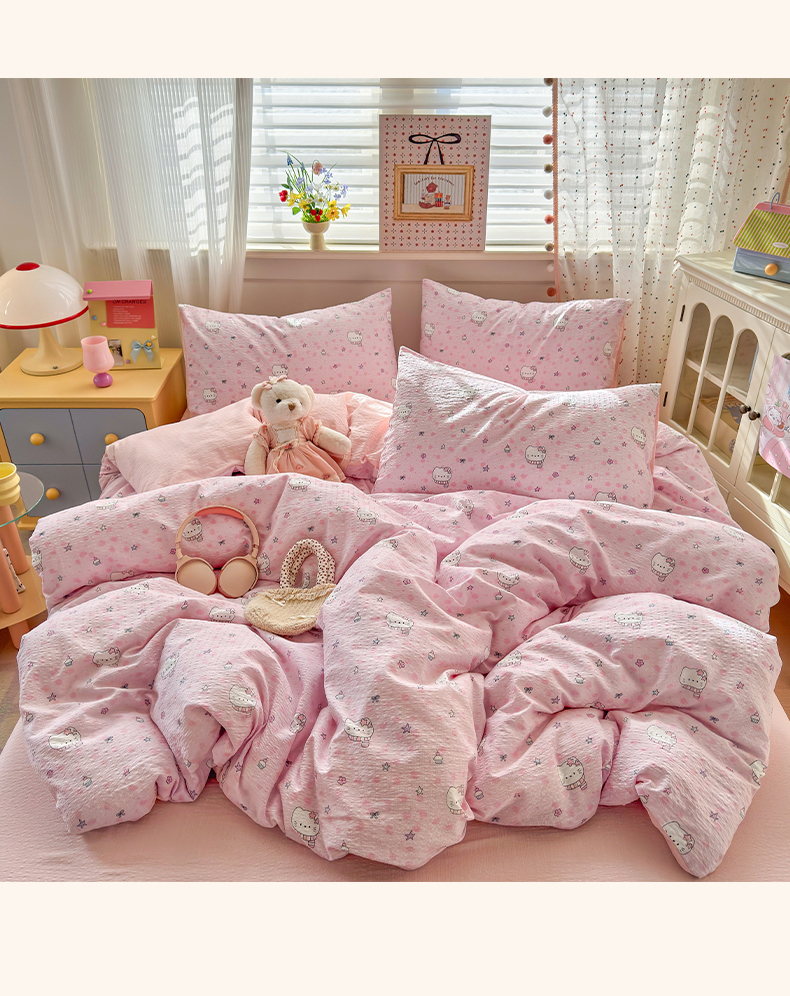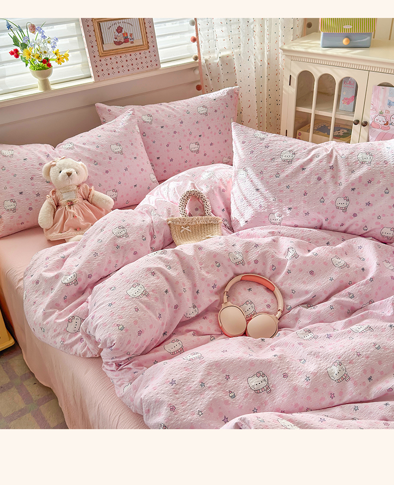 当前位置: 91家纺网 > 商品网购 > 床品套件 > 四件套 > 其它四件套 > 优承佳生活馆 2026年新款卡通小清新风格高克重超柔软糯泡芙双层纱面料三件套四件套单被套系列 hello粉凯蒂