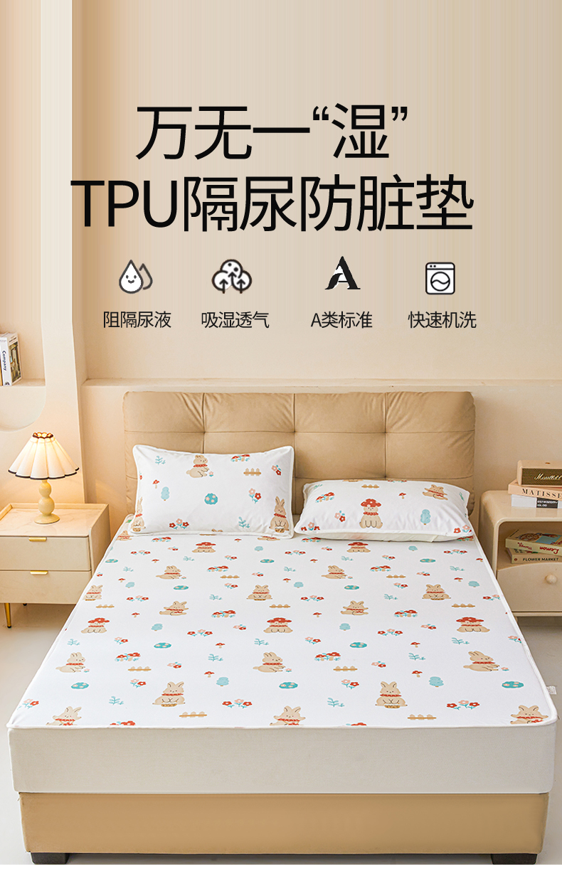 当前位置: 91家纺网 > 商品网购 > 床上用品 > 床笠 > 女子家纺 2026春夏新款TPU防水隔尿床护垫床笠款印花小清新卡通儿童床垫保护套 防水床笠-甜梦小兔