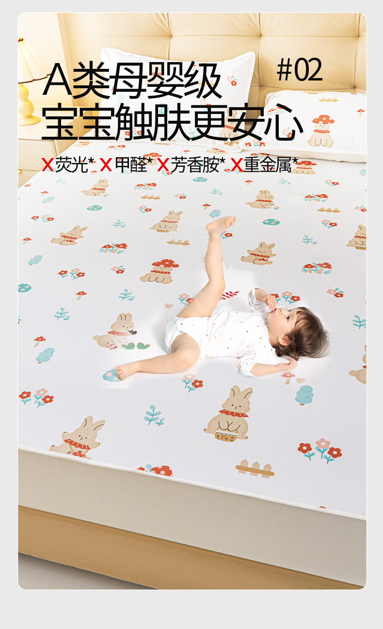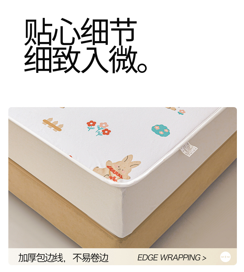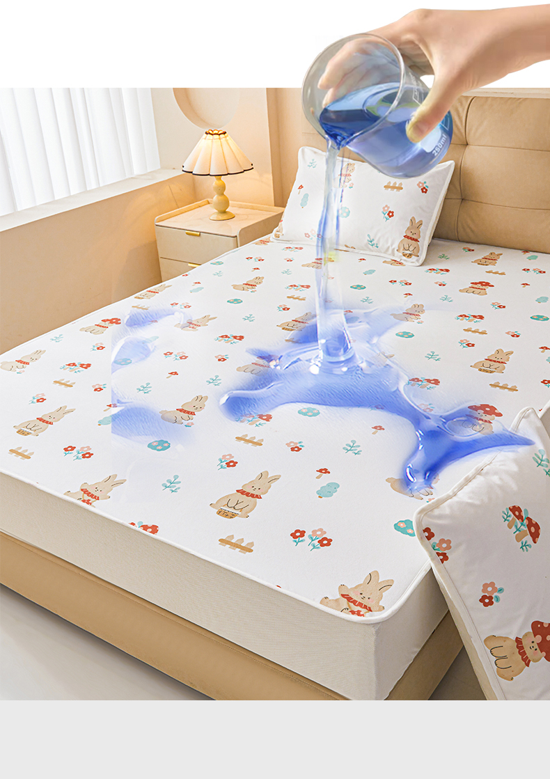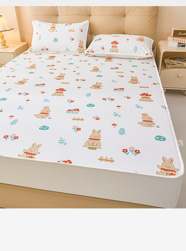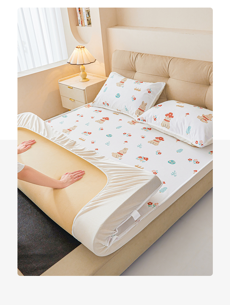 • 91家纺网 家纺一手货源 找家纺 女子家纺 2026春夏新款TPU防水隔尿床护垫床笠款印花小清新卡通儿童床垫保护套 防水床笠-甜梦小兔