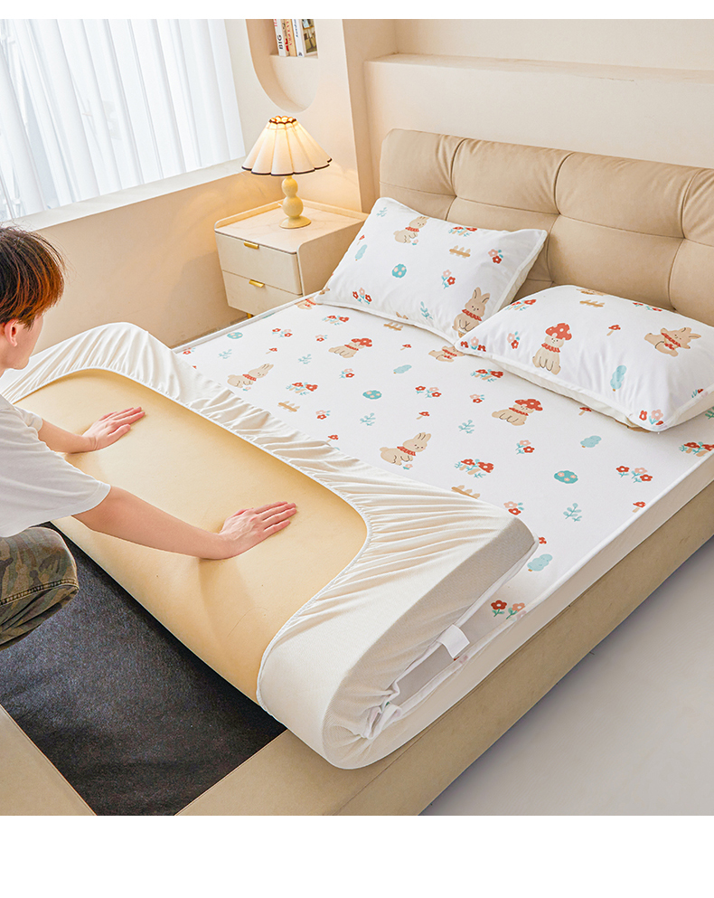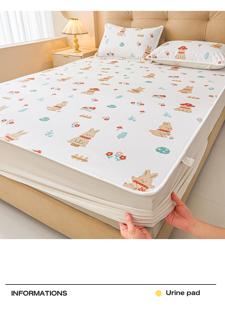女子家纺 2026春夏新款TPU防水隔尿床护垫床笠款印花小清新卡通儿童床垫保护套 防水床笠-甜梦小兔