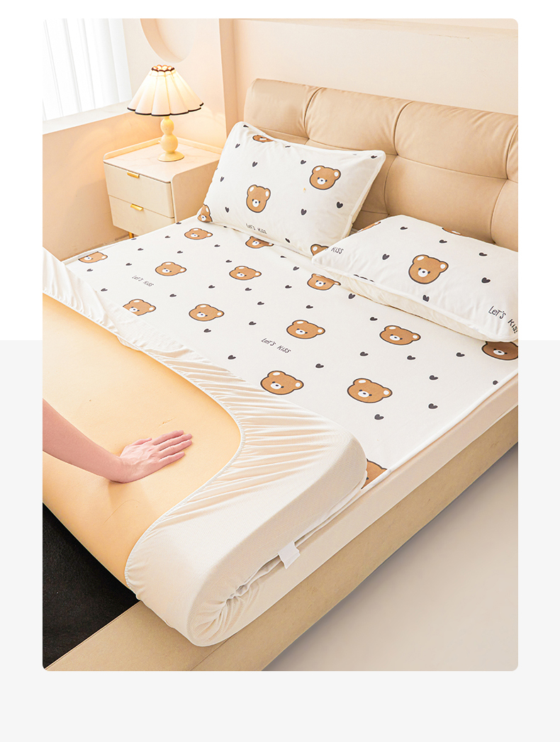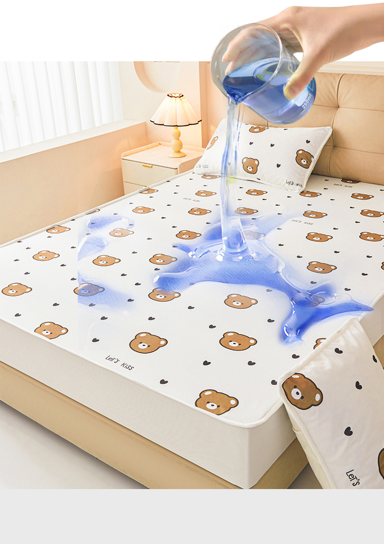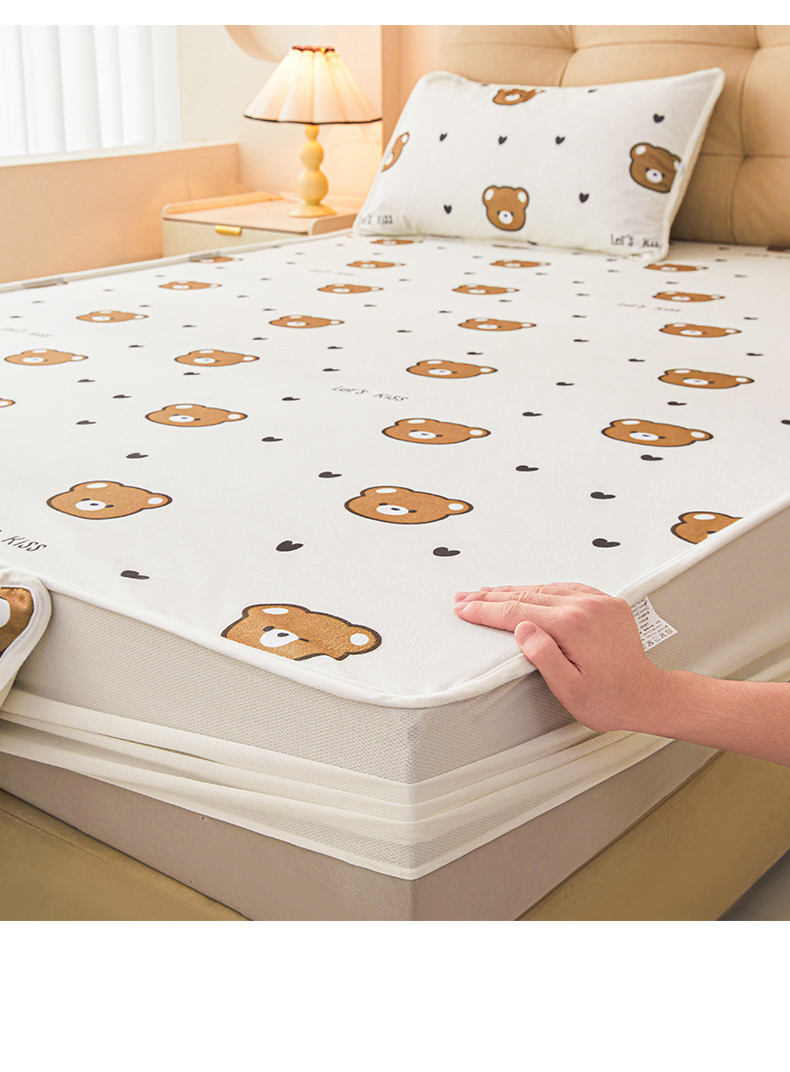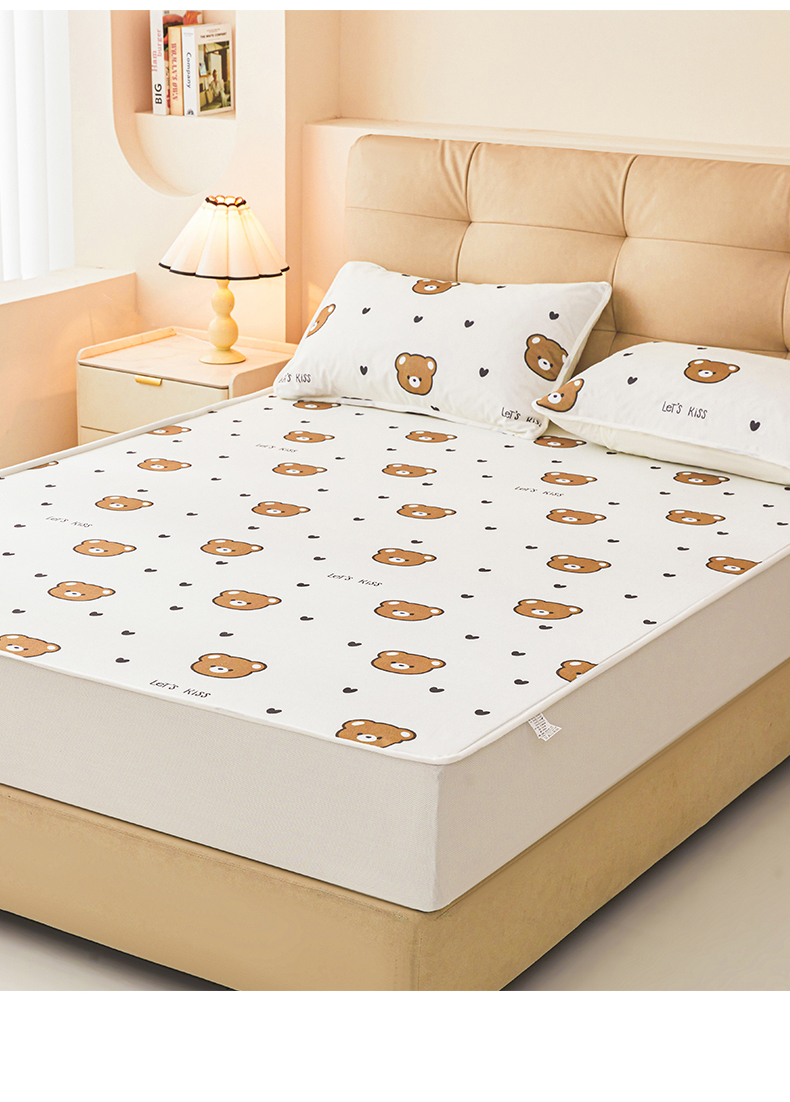 • 91家纺网 家纺一手货源 找家纺 女子家纺 2026春夏新款TPU防水隔尿床护垫床笠款印花小清新卡通儿童床垫保护套 防水床笠-小熊派对