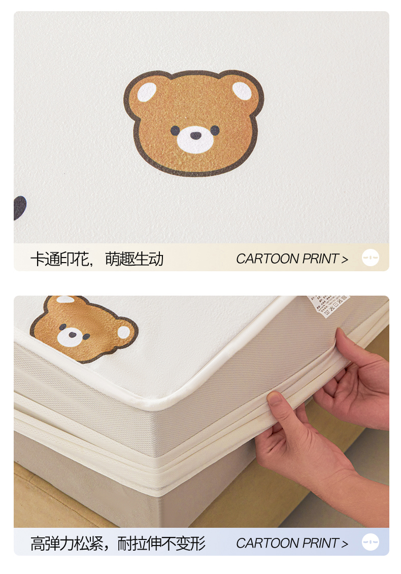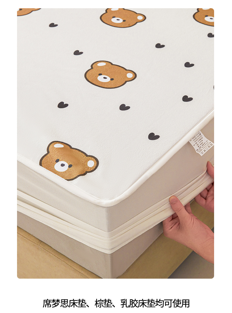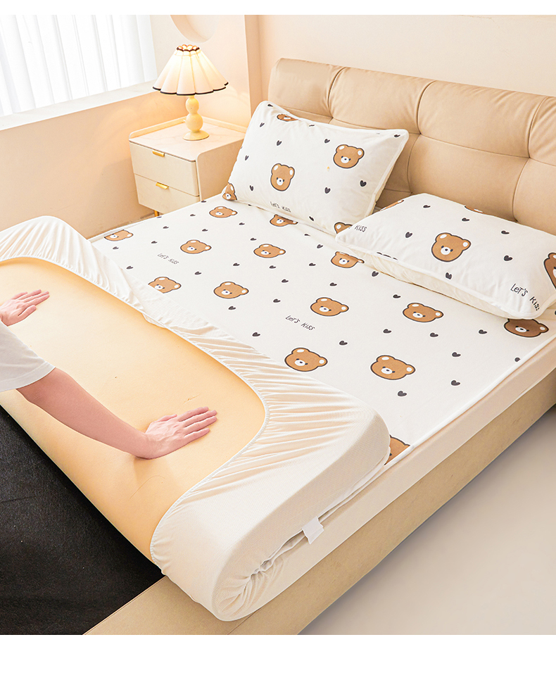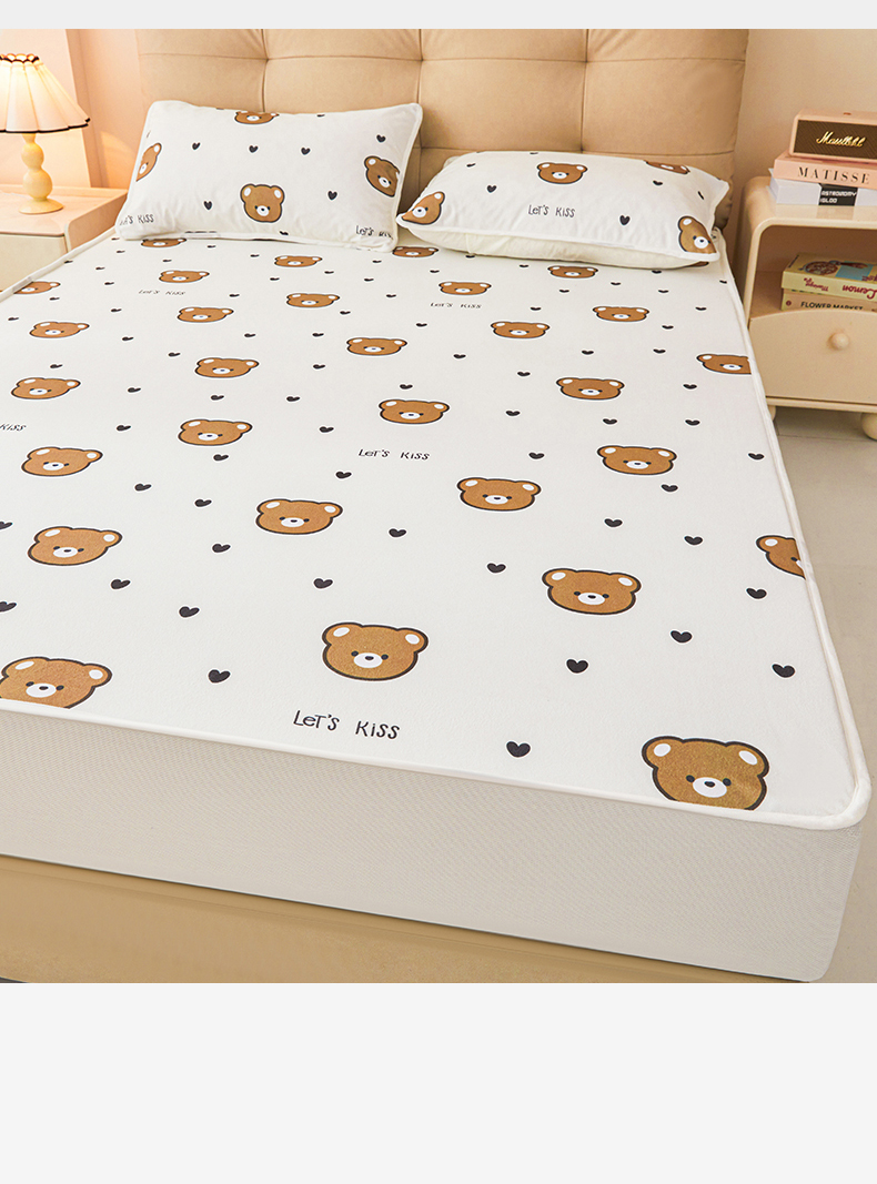 • 91家纺网 家纺一手货源 找家纺 女子家纺 2026春夏新款TPU防水隔尿床护垫床笠款印花小清新卡通儿童床垫保护套 防水床笠-小熊派对