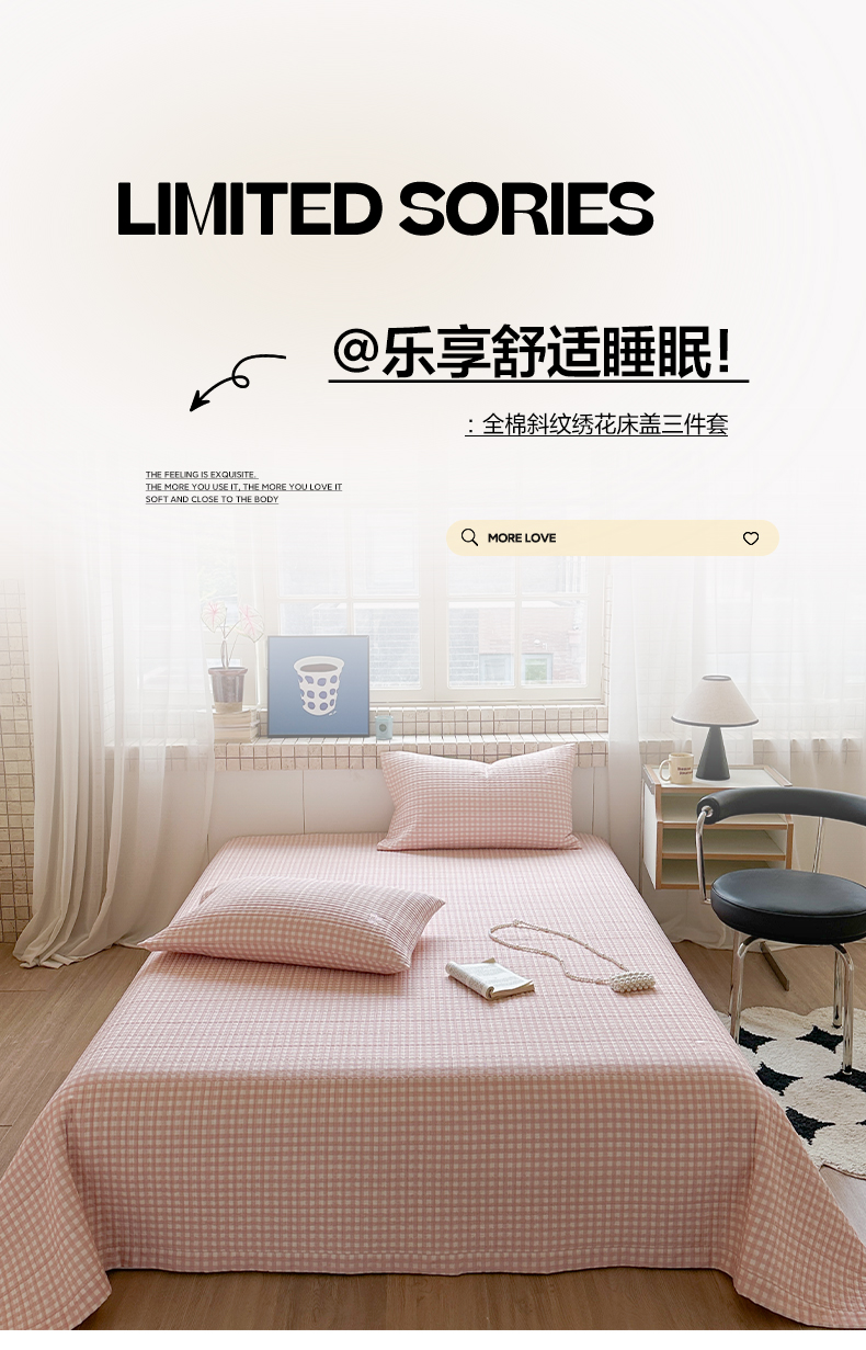(总)琳可家居 2026春夏新品双面斜纹全棉印花绣花床盖可机洗加密绗缝高温水洗