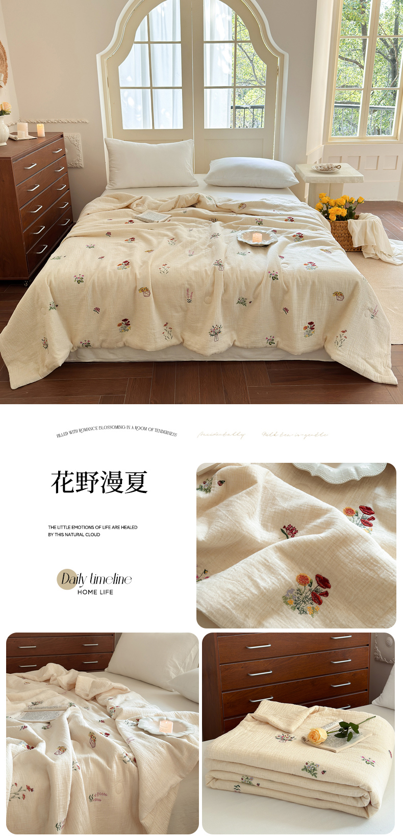 木楌家居 2026新款棉麻皱皱纱刺绣款夏被-棉野序章系列 组合图