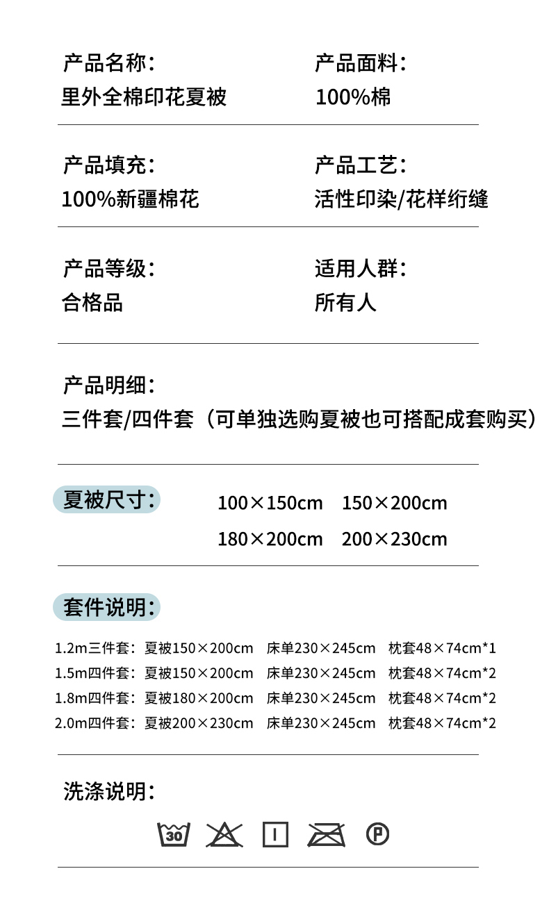 150x200cm单夏被+床单+枕套一对 | ¥101.00 |