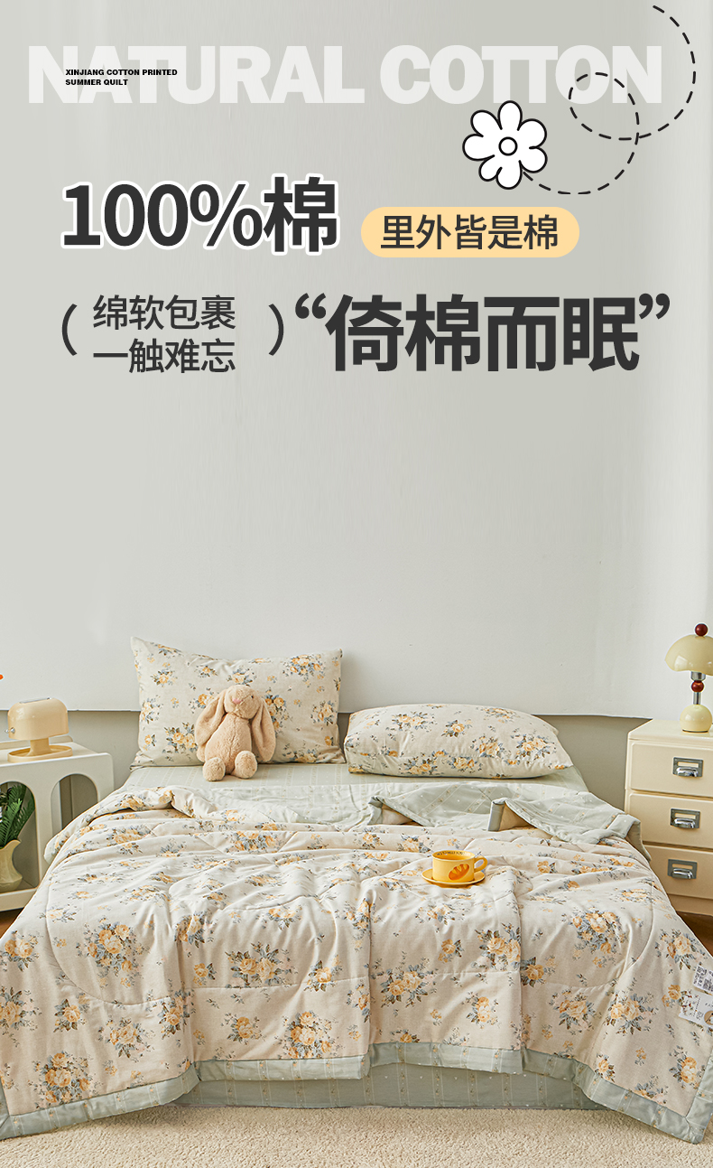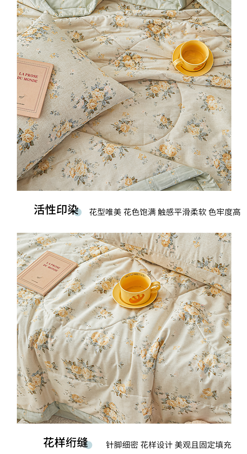 • 91家纺网 家纺一手货源 找家纺 尊妙被业 2026新款小清新花卉里外全棉纯棉棉花被夏被夏凉被空调被 蔷薇的故事-黄