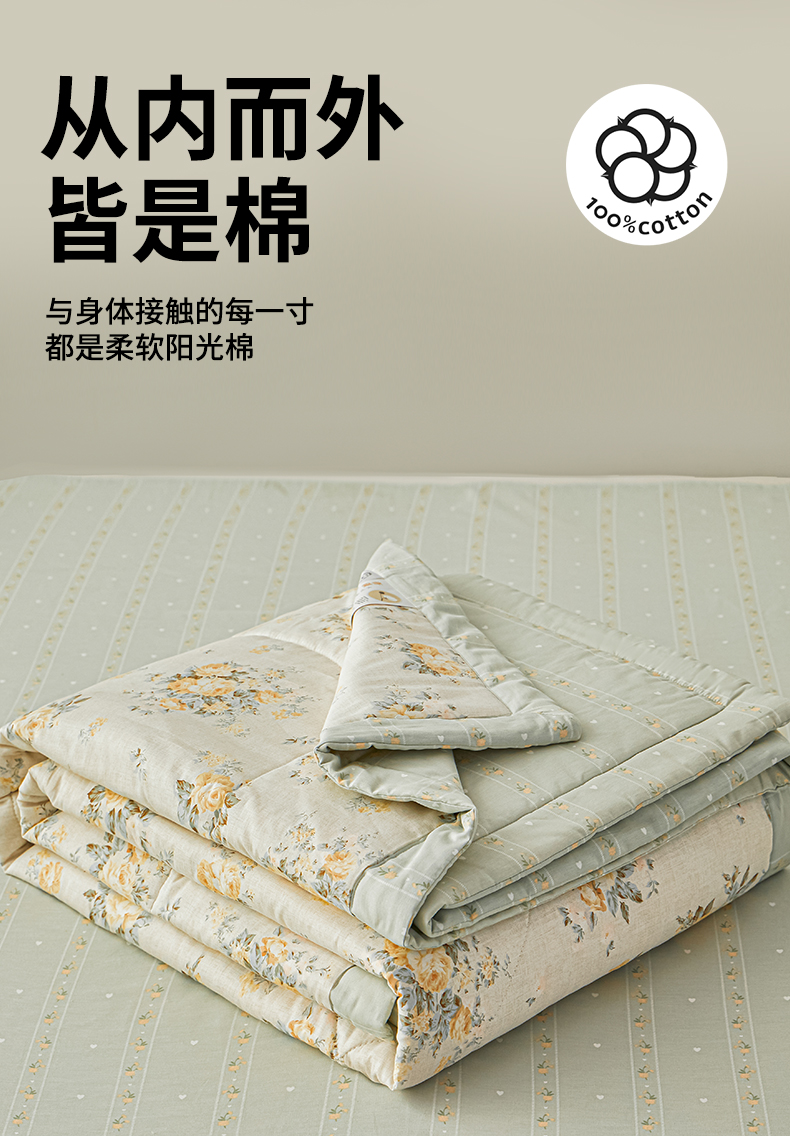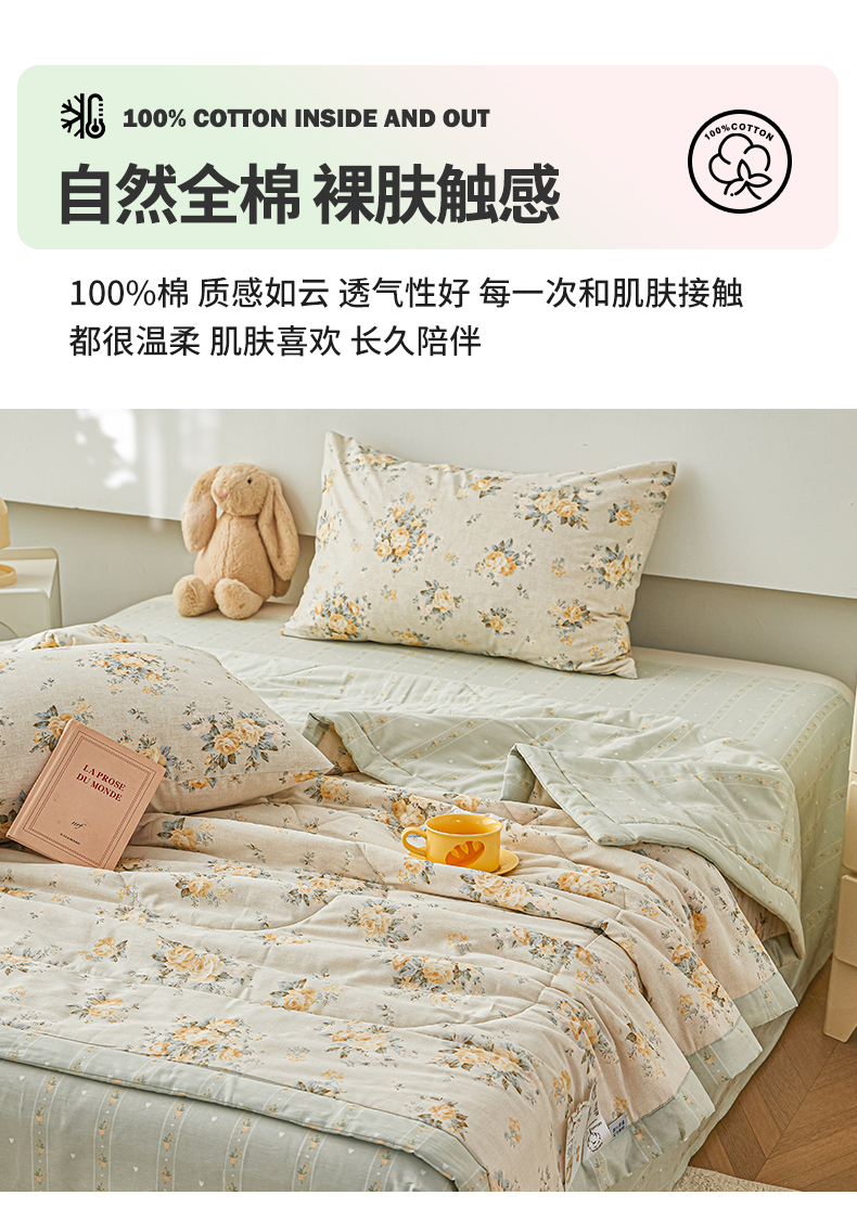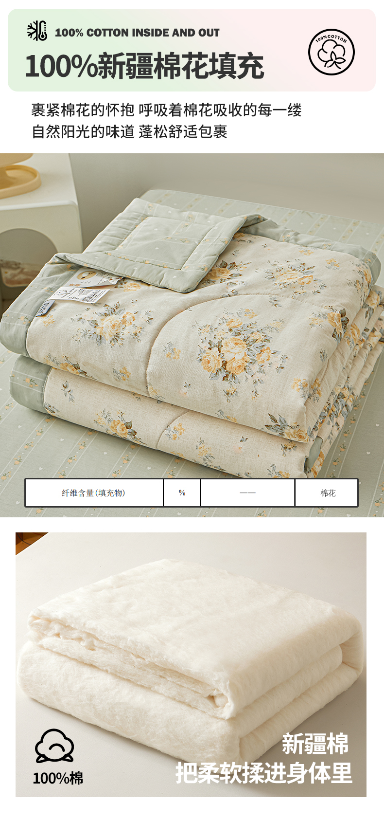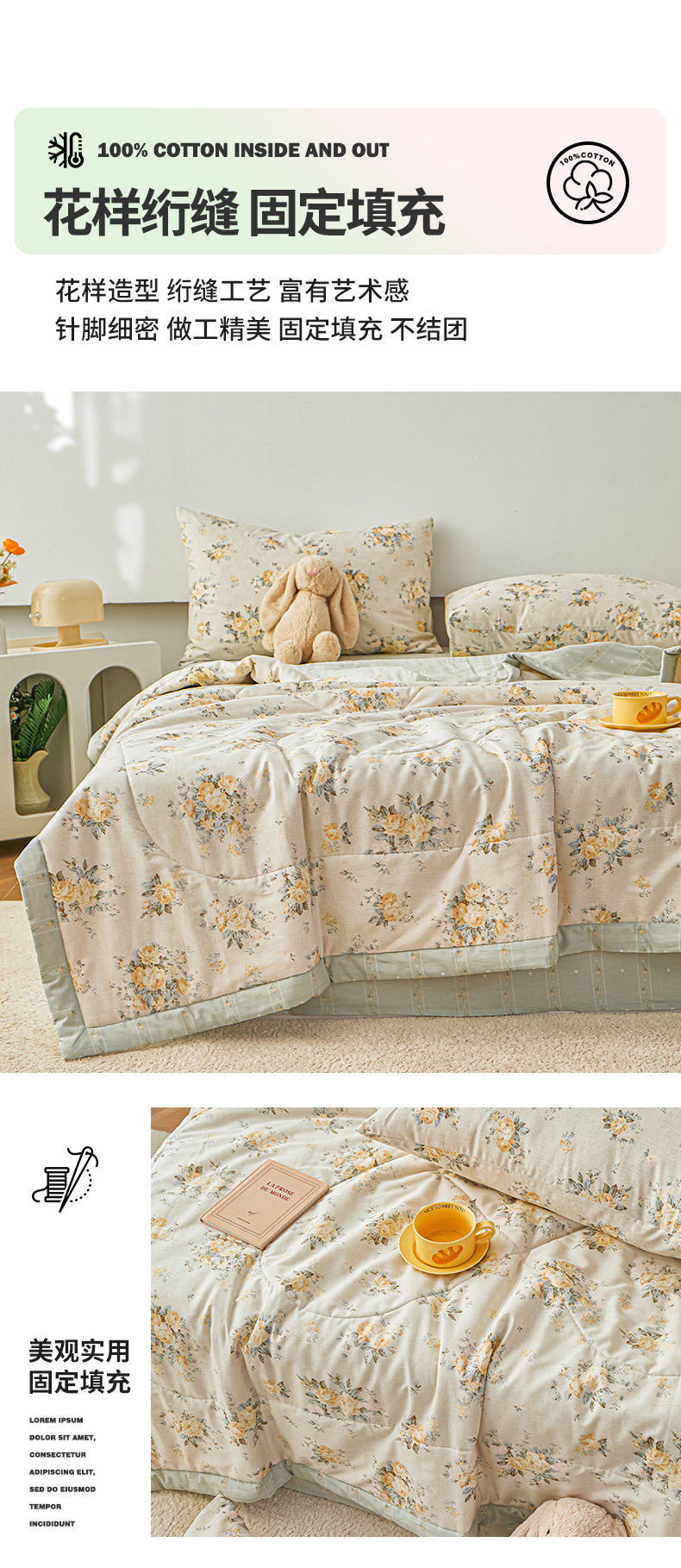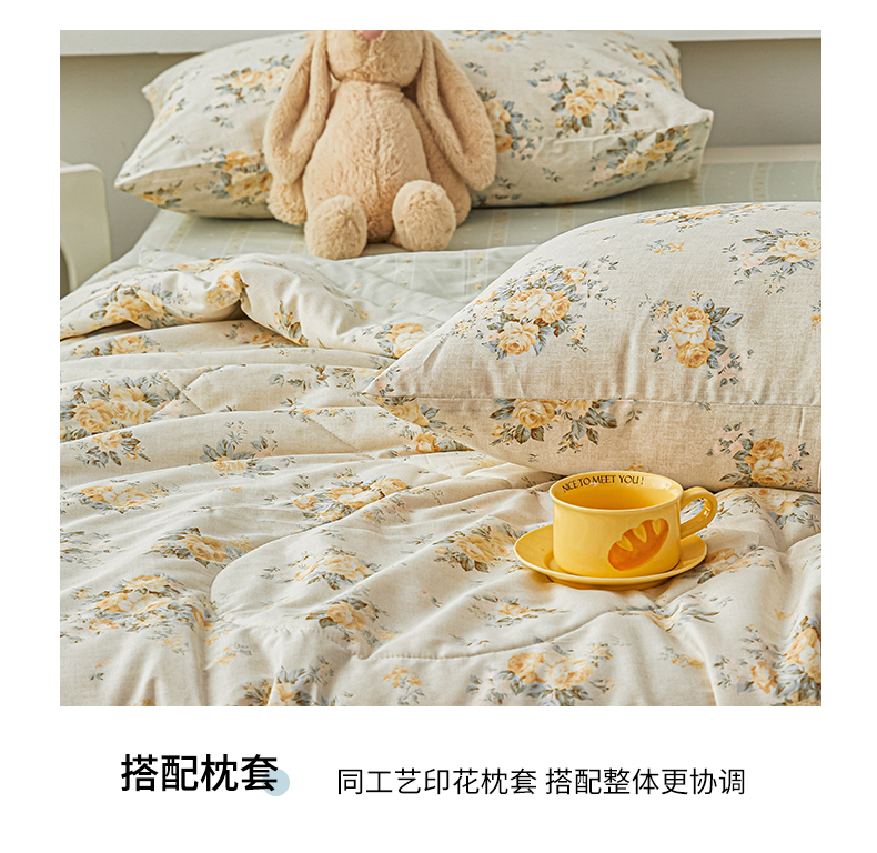 尊妙被业 2026新款小清新花卉里外全棉纯棉棉花被夏被夏凉被空调被 蔷薇的故事-黄