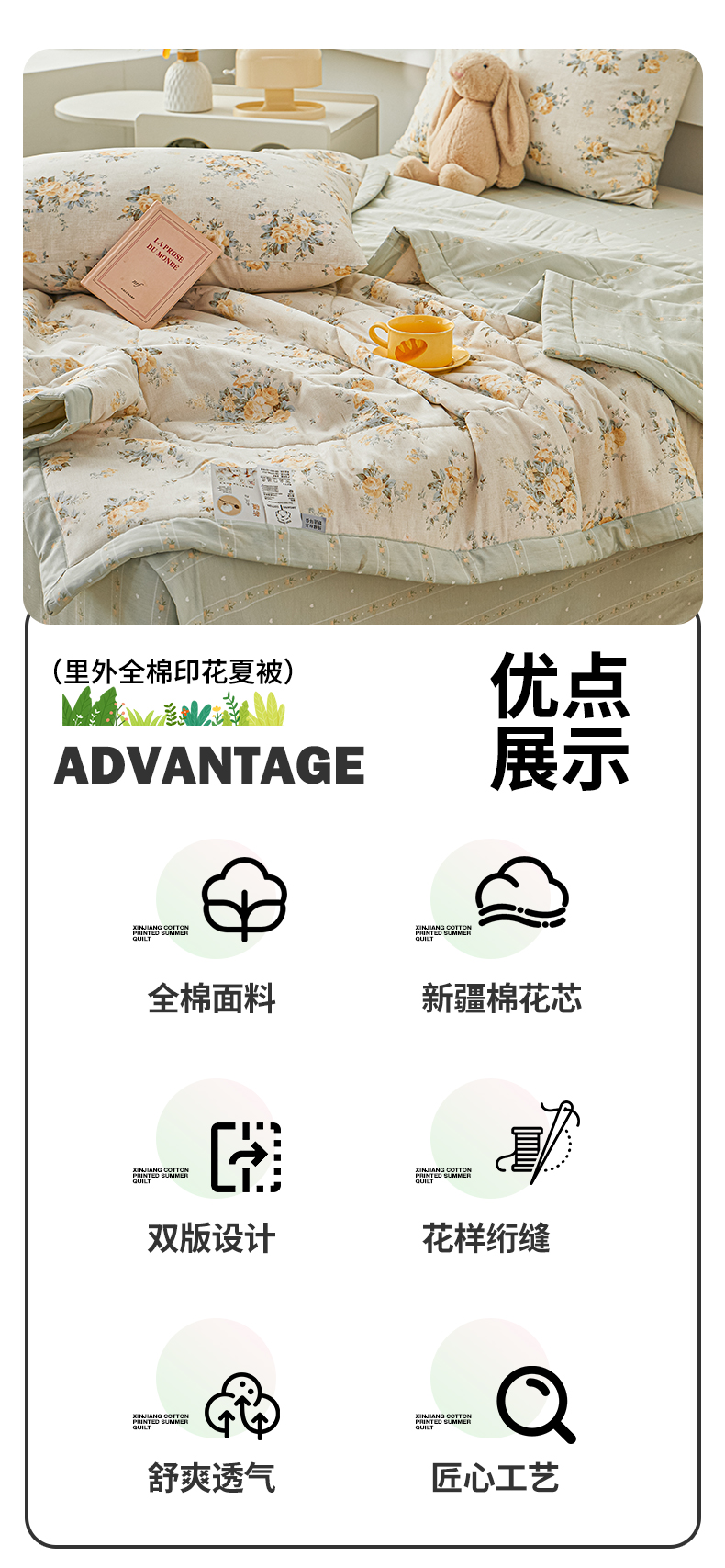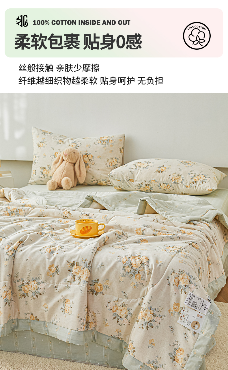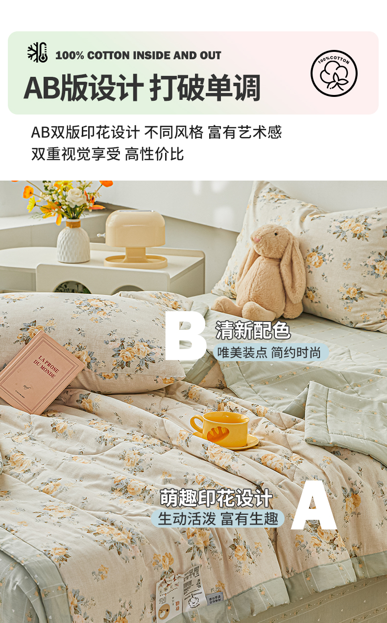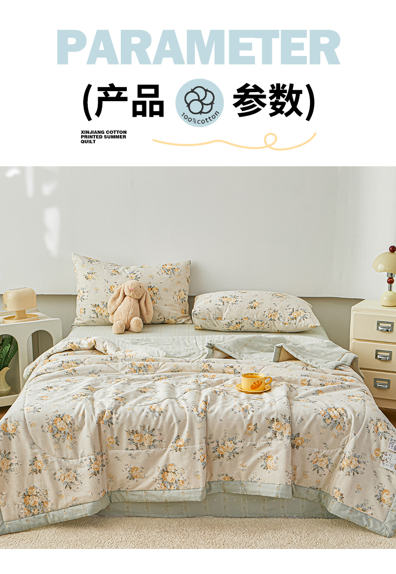 尊妙被业 2026新款小清新花卉里外全棉纯棉棉花被夏被夏凉被空调被 蔷薇的故事-黄