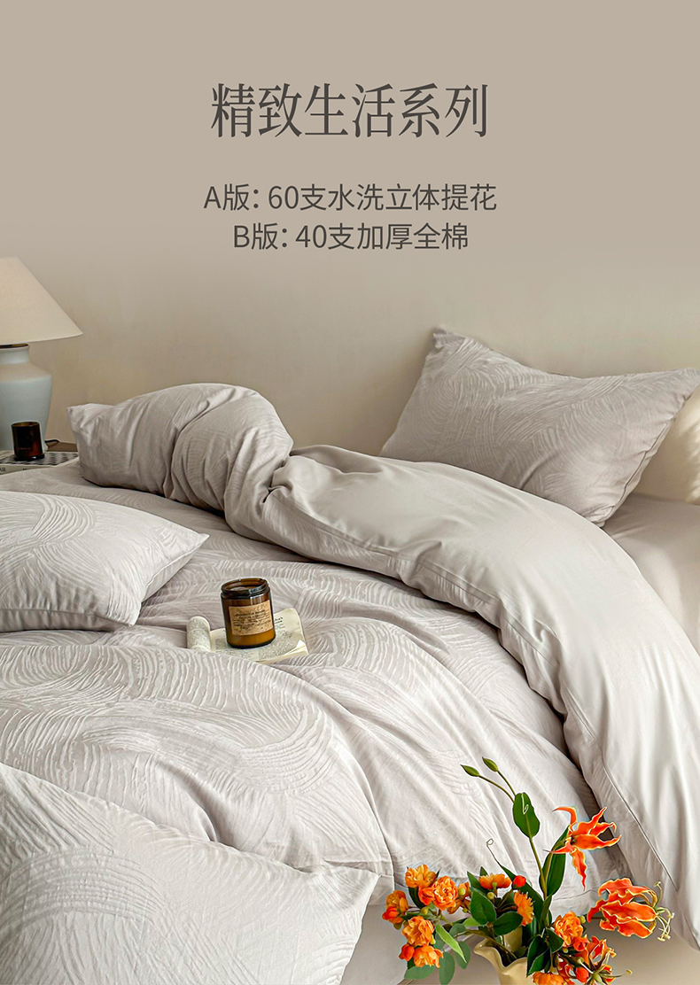 当前位置: 91家纺网 > 商品网购 > 床品套件 > 四件套 > 全棉普通四件套 > 眠博士 2026新款全棉纯棉水洗立体提花四件套 月岛弥生-灰