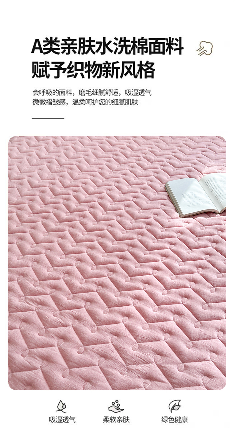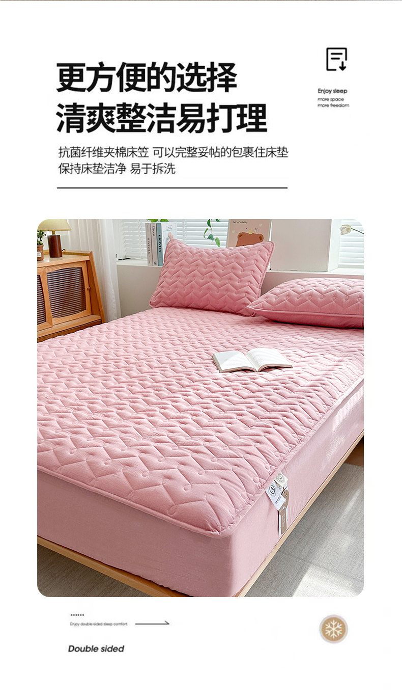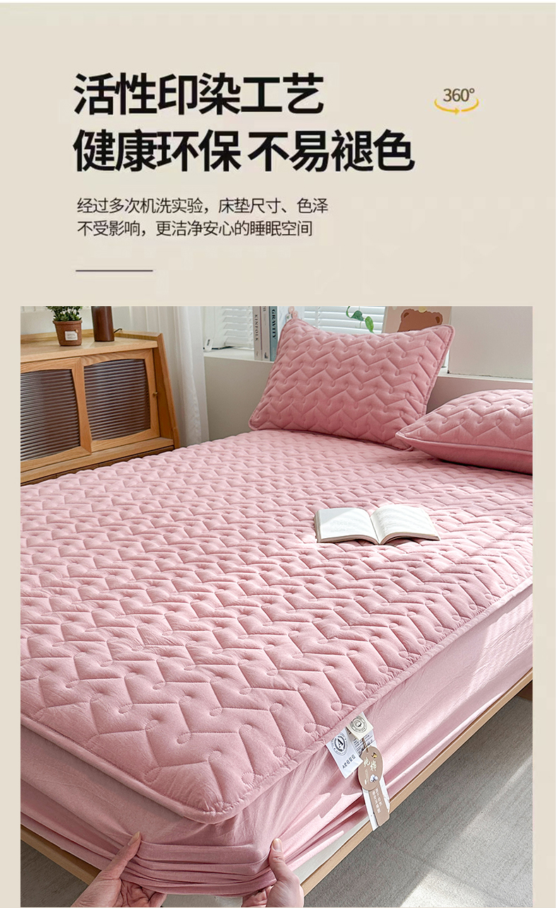 • 91家纺网 家纺一手货源 找家纺 犇牛仓储供应链 2026新款全棉色织水洗棉夹棉床笠床垫【可定制】 纯色素雅-豆沙粉