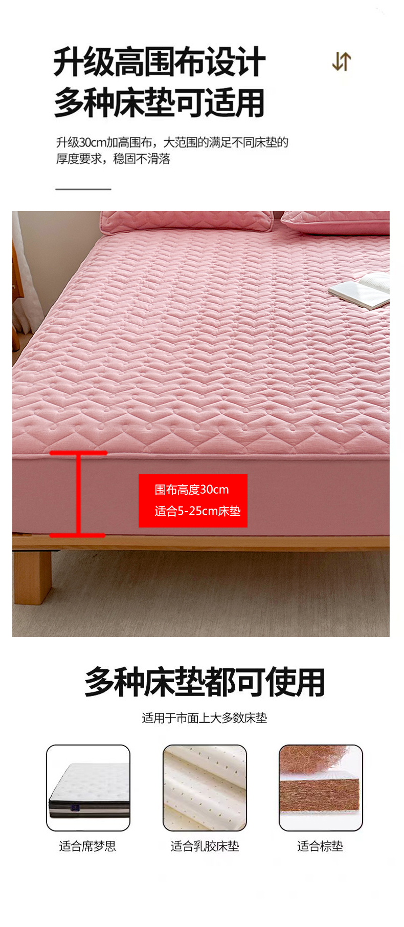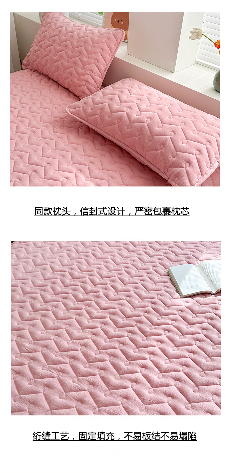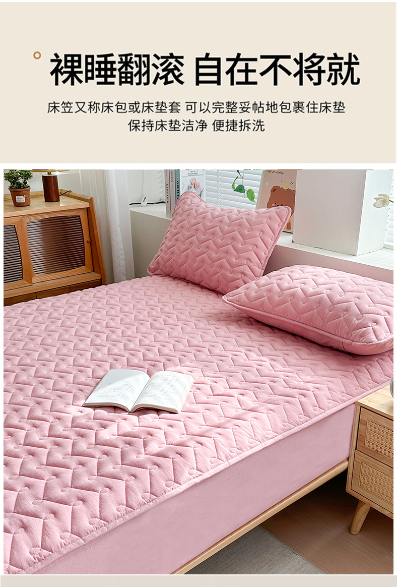 • 91家纺网 家纺一手货源 找家纺 犇牛仓储供应链 2026新款全棉色织水洗棉夹棉床笠床垫【可定制】 纯色素雅-豆沙粉