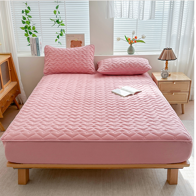犇牛仓储供应链 2026新款全棉色织水洗棉夹棉床笠床垫【可定制】 纯色素雅-豆沙粉
