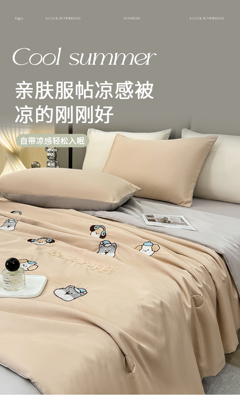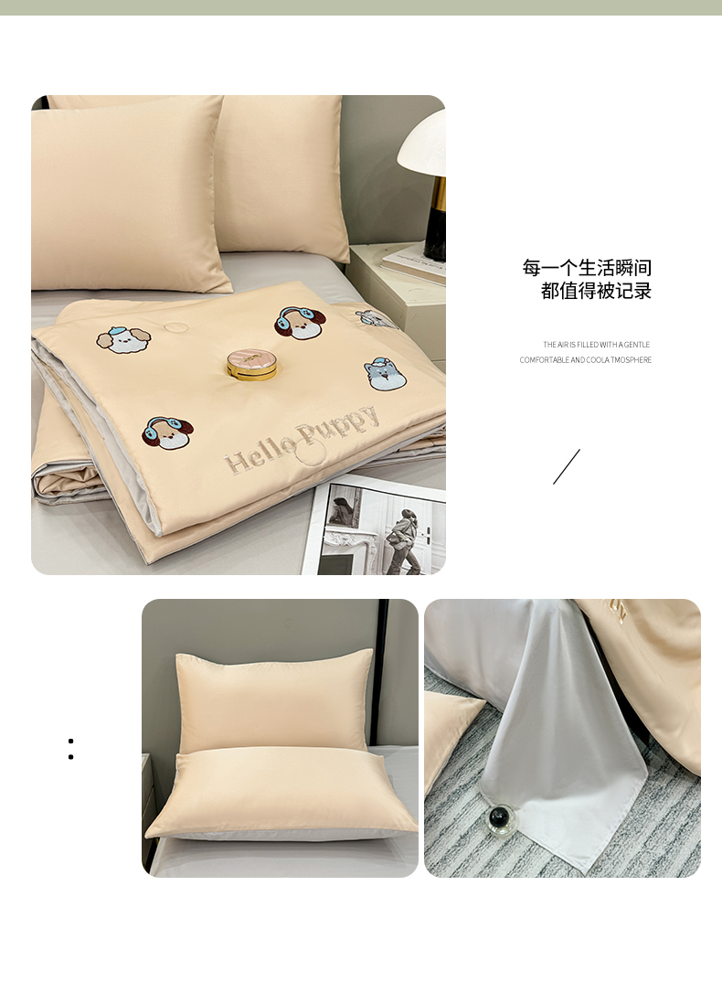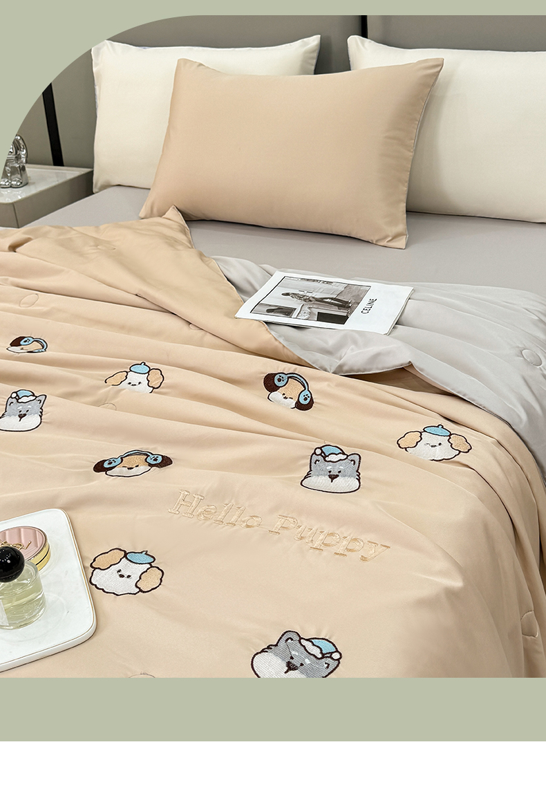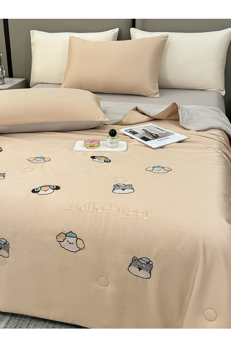 当前位置: 91家纺网 > 商品网购 > 被子 > 夏被 > 欢乐季 2026新款A类水洗冰丝满版刺绣夏被夏凉被空调被四件套 狗狗-梧桐灰