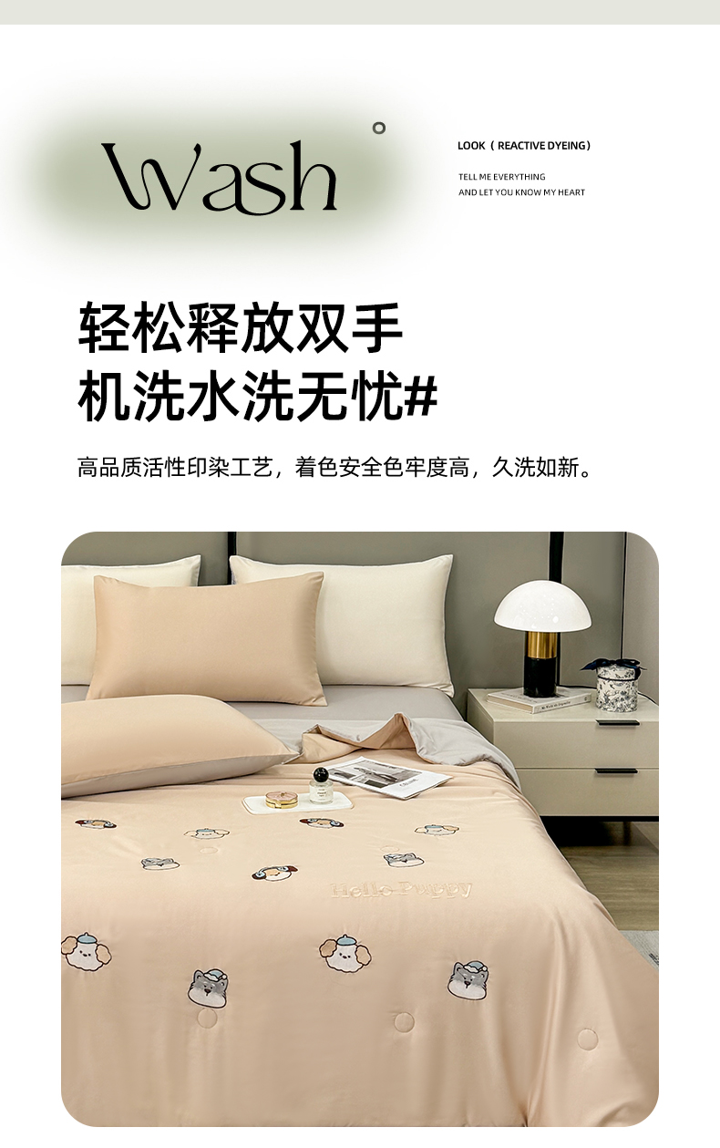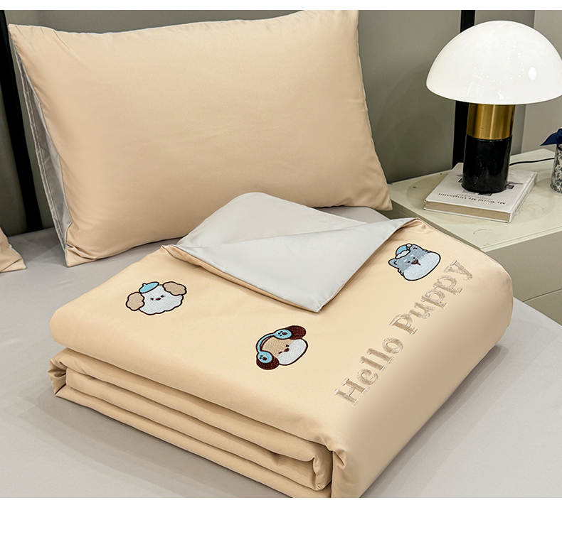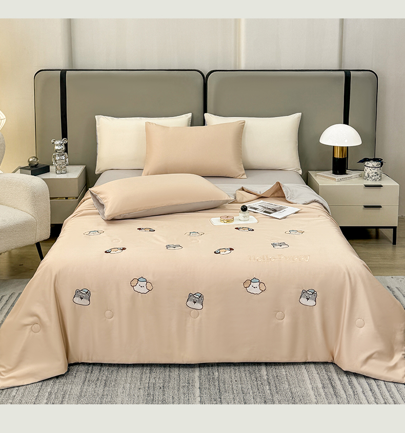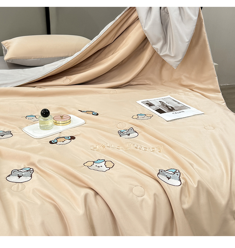 (总)欢乐季 2026新款A类水洗冰丝满版刺绣夏被夏凉被空调被四件套,狗狗-梧桐灰,花朵-奶白粉,猫咪-奶白蓝,南瓜-水果奶黄,小熊-奶黄绿,郁金香-奶白紫