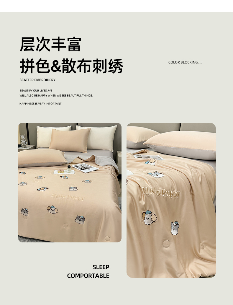 • 91家纺网 家纺一手货源 找家纺 欢乐季 2026新款A类水洗冰丝满版刺绣夏被夏凉被空调被四件套 狗狗-梧桐灰
