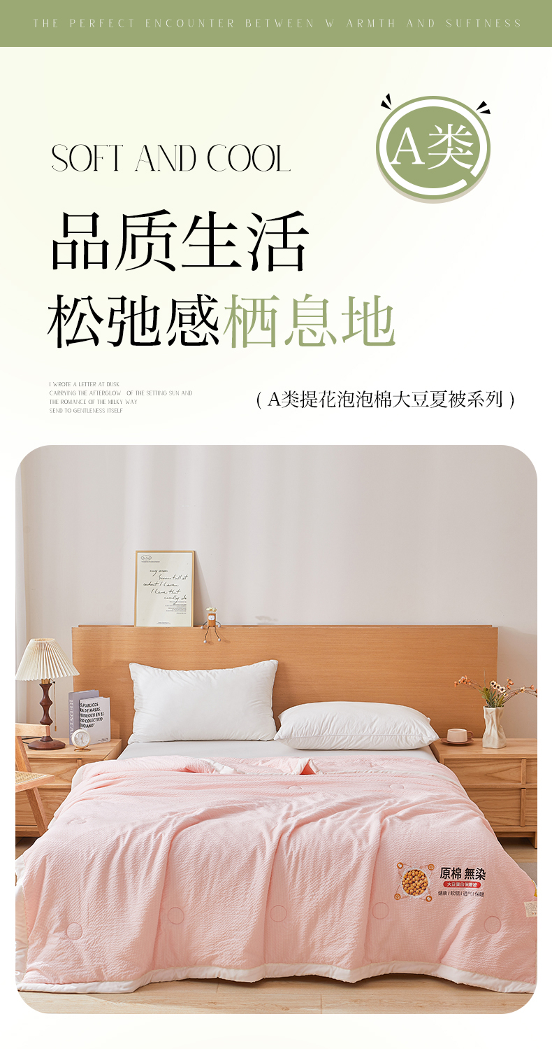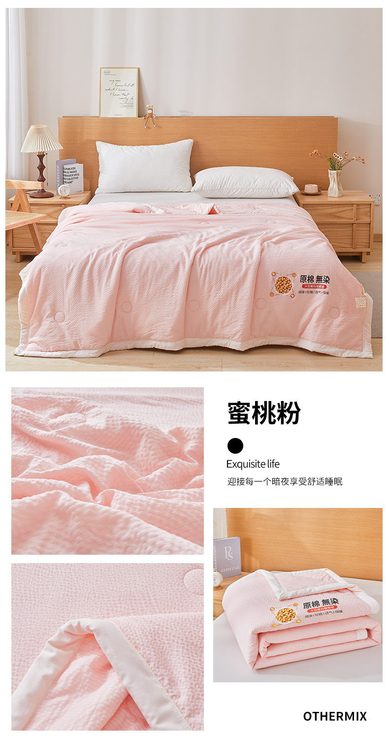商品名称:欢乐季 2026新款A类提花皱皱纱超声波大豆夏被夏凉被空调被 蜜桃粉