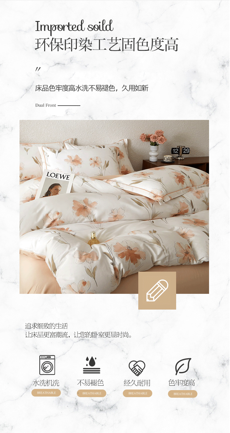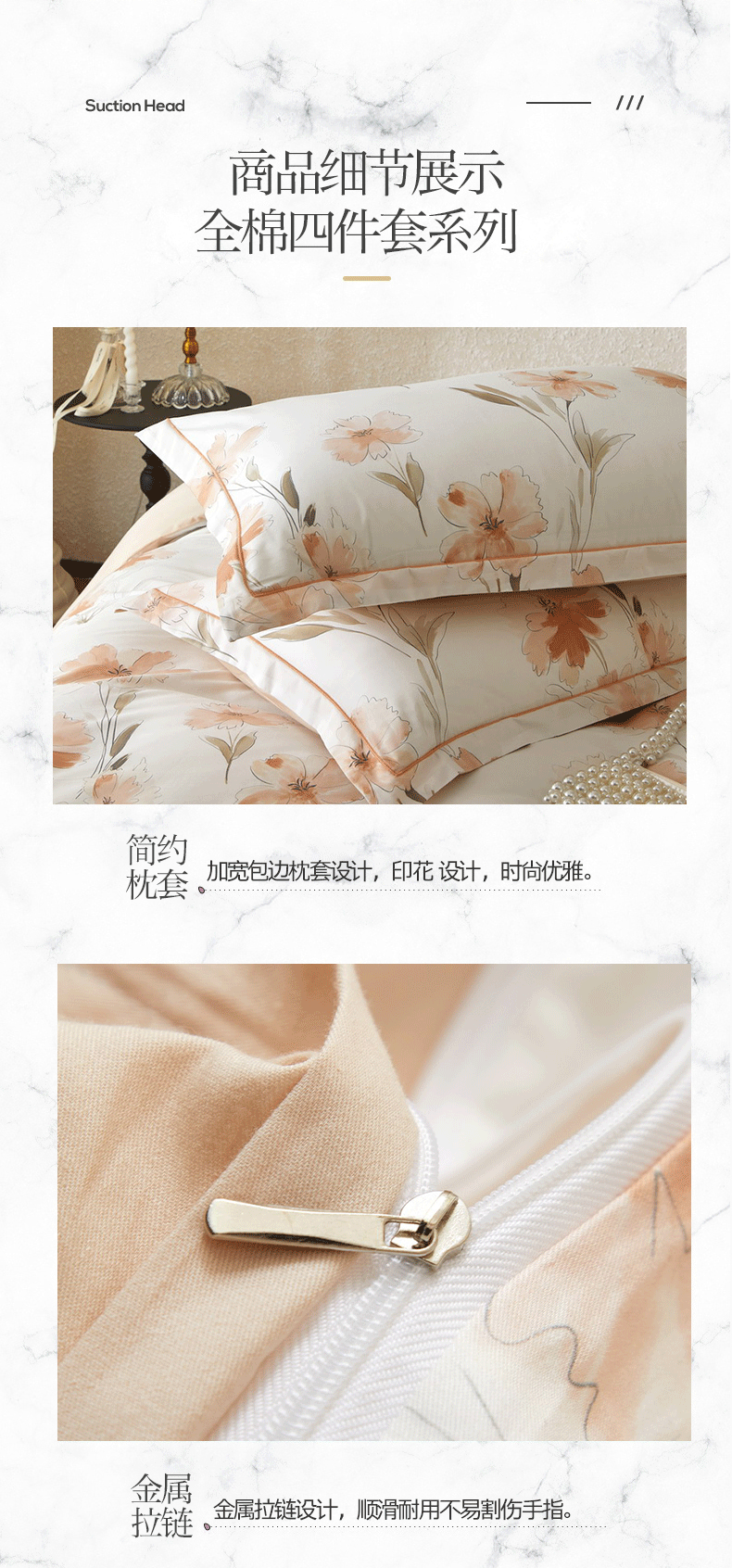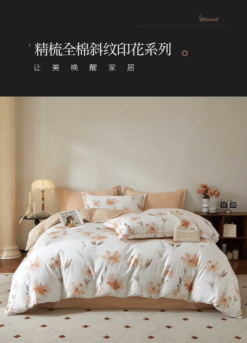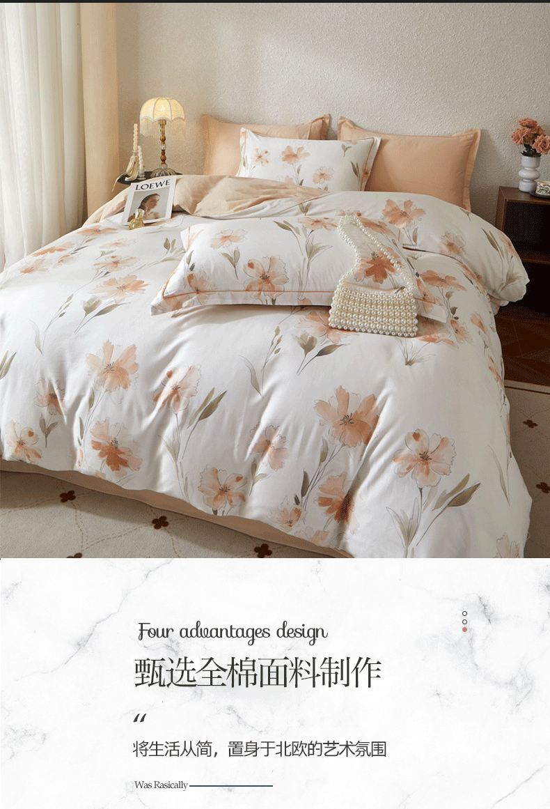 沐白家居 2026新款亲肤舒适全棉印花四件套 楚容-米