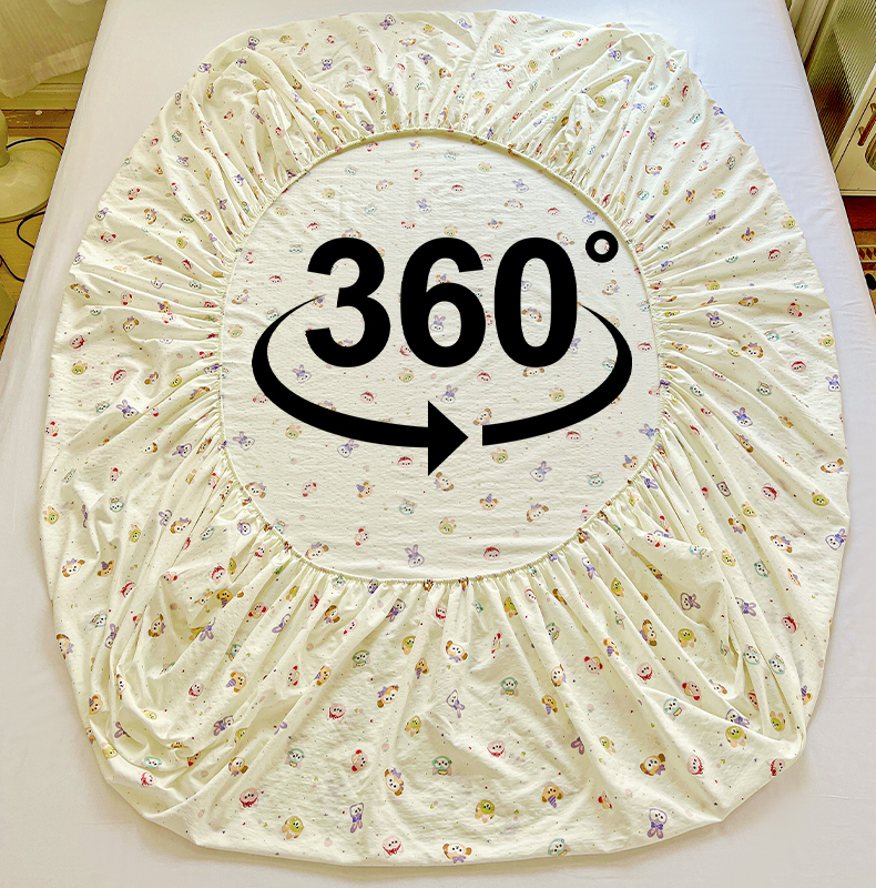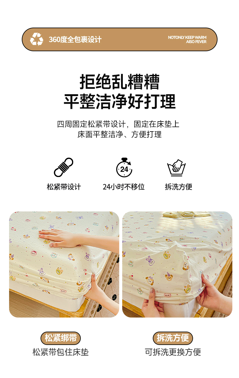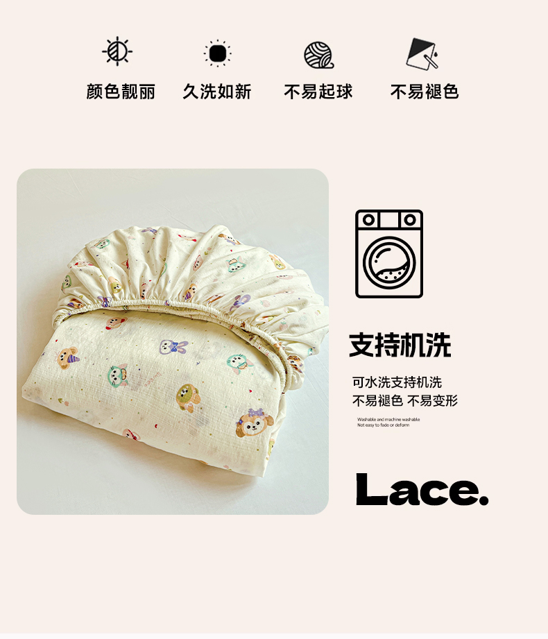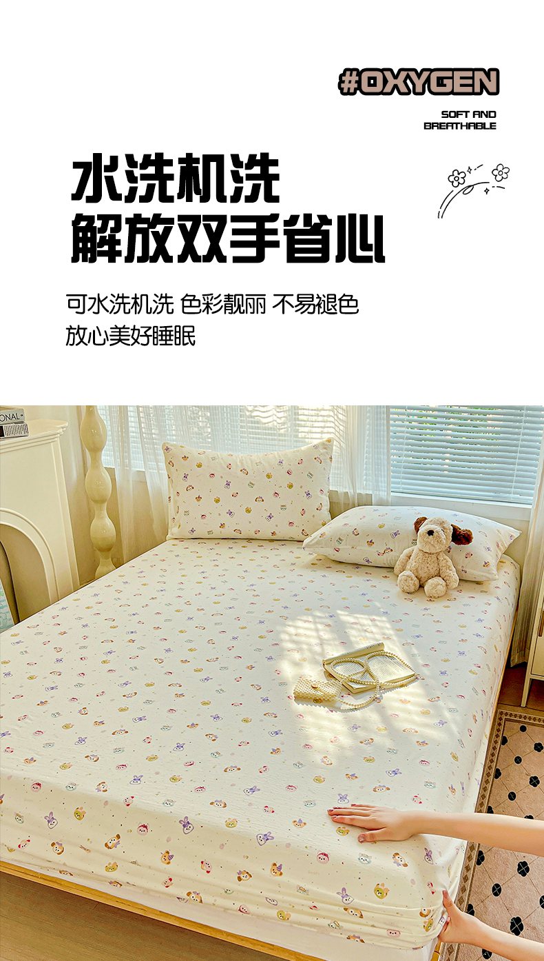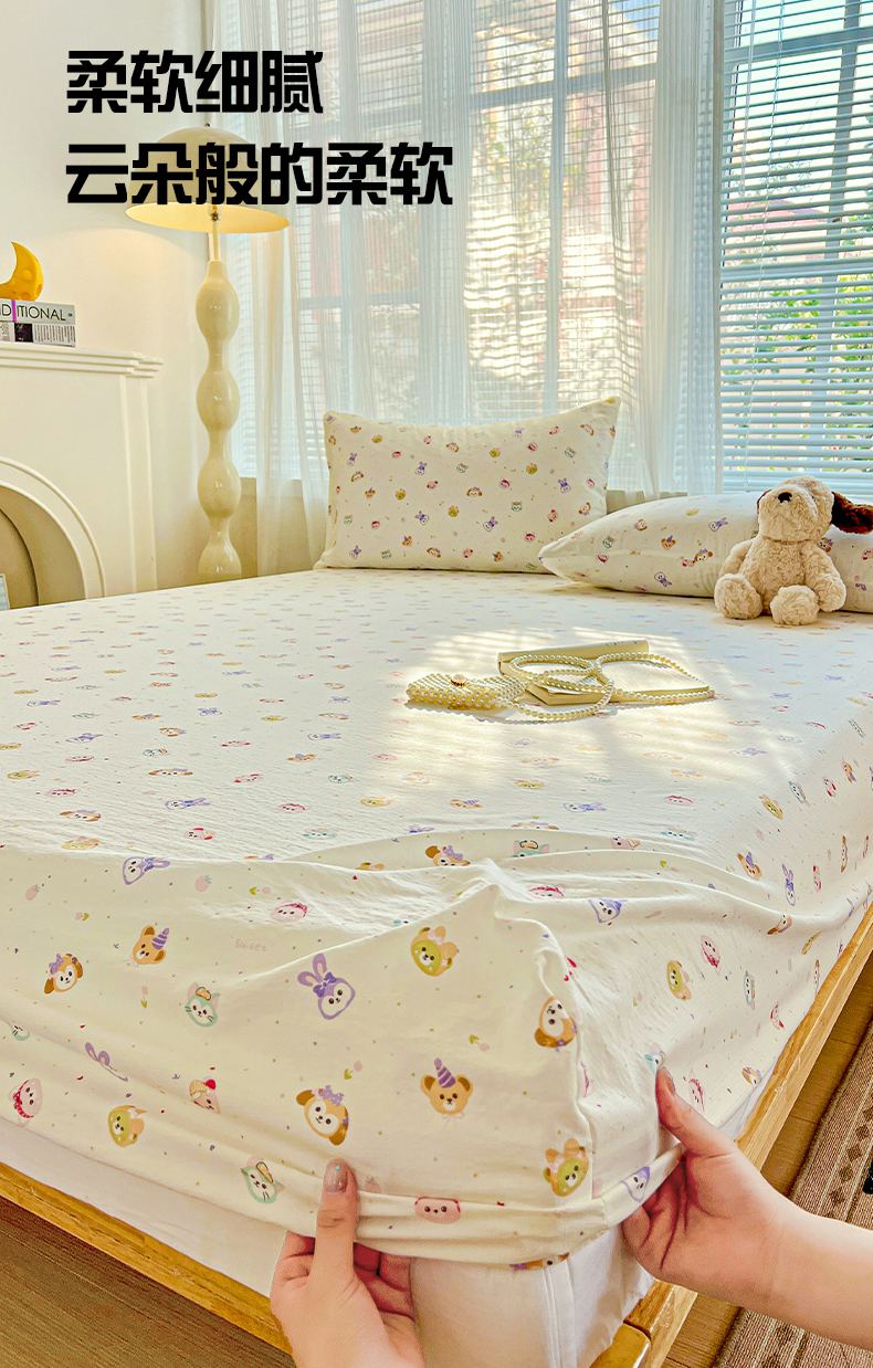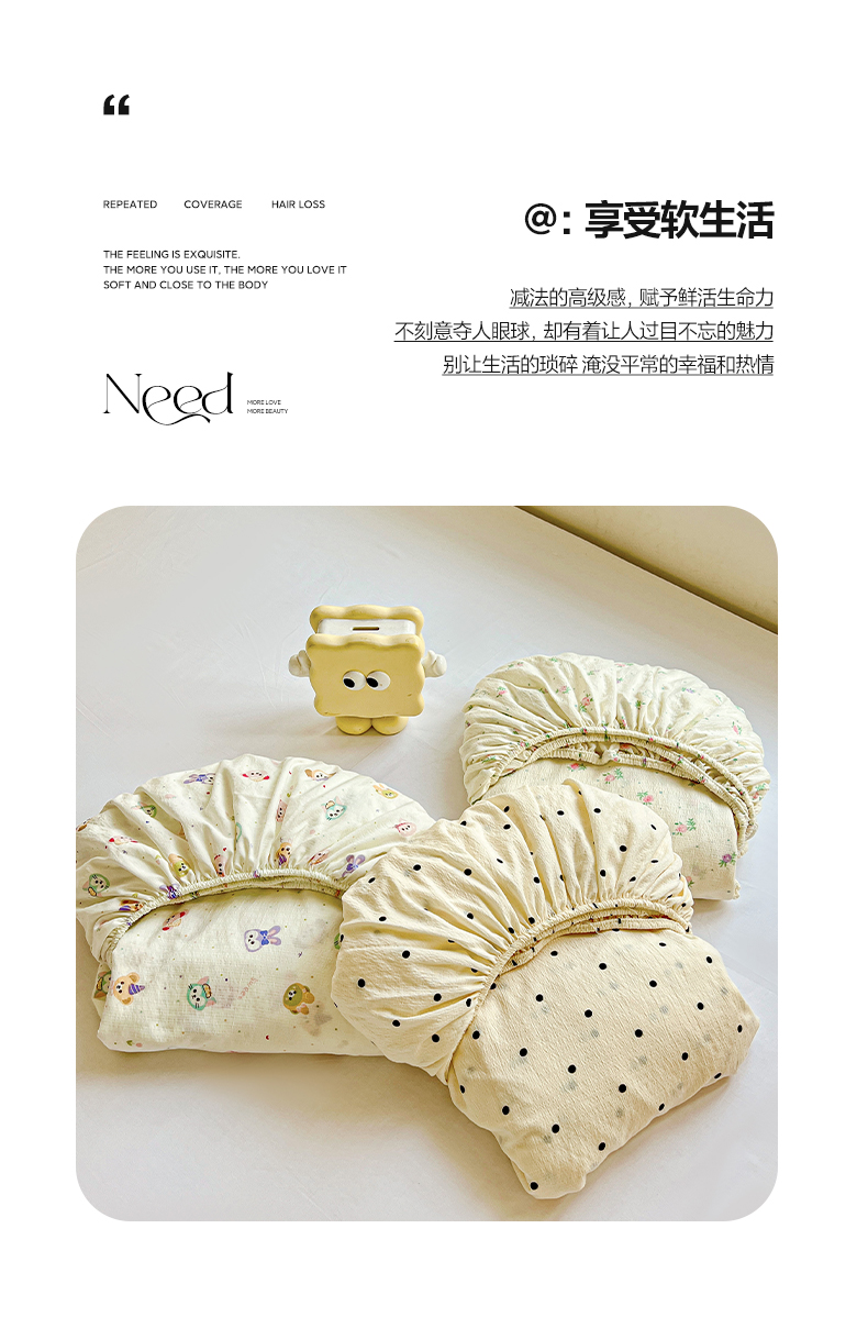 • 91家纺网 家纺一手货源 找家纺 优选 2026新款ins小清新木棉双层纱印花床笠床垫保护罩枕套三件套 宠溺
