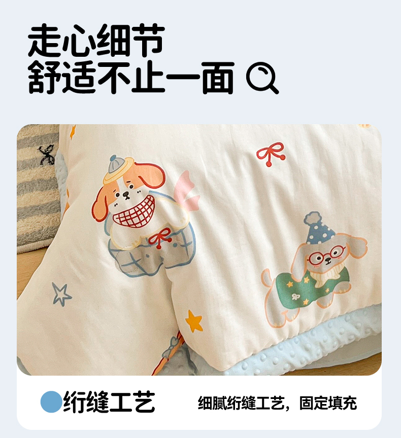当前位置: 91家纺网 > 商品网购 > 被子 > 夏被 > 盛秋家纺 2026新款A类水洗棉豆豆夏被系列二 狗狗游园+天空蓝