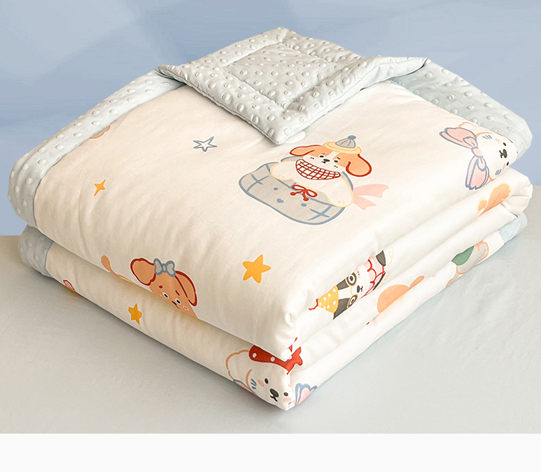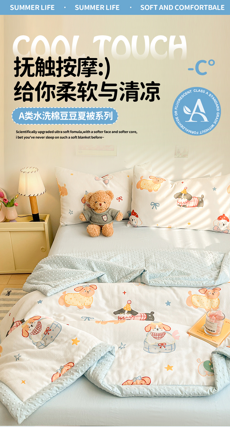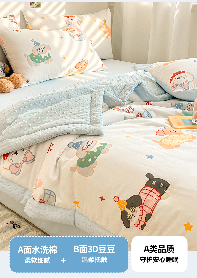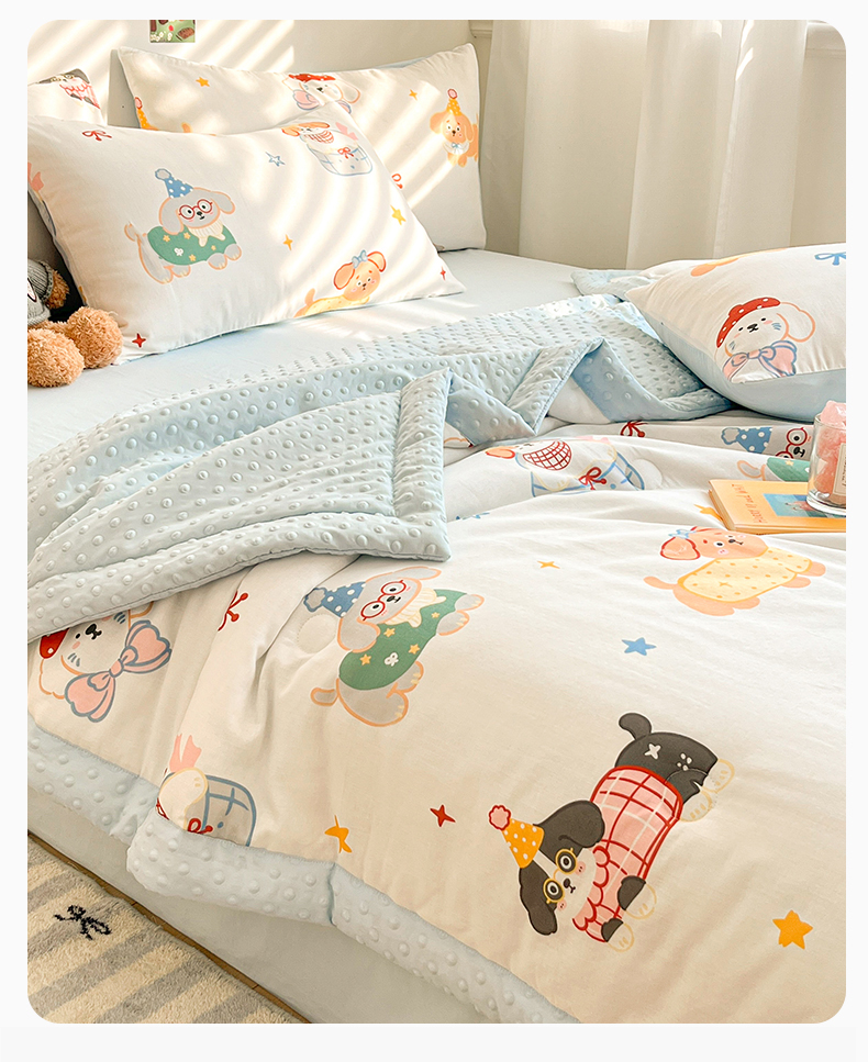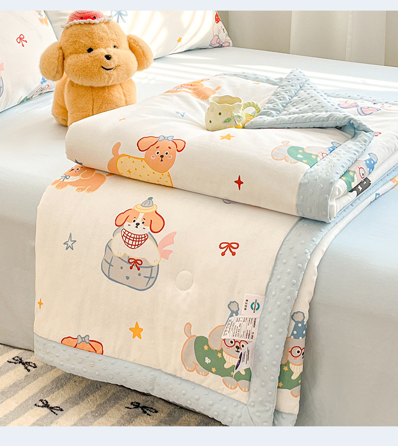 盛秋家纺 2026新款A类水洗棉豆豆夏被系列二 狗狗游园+天空蓝