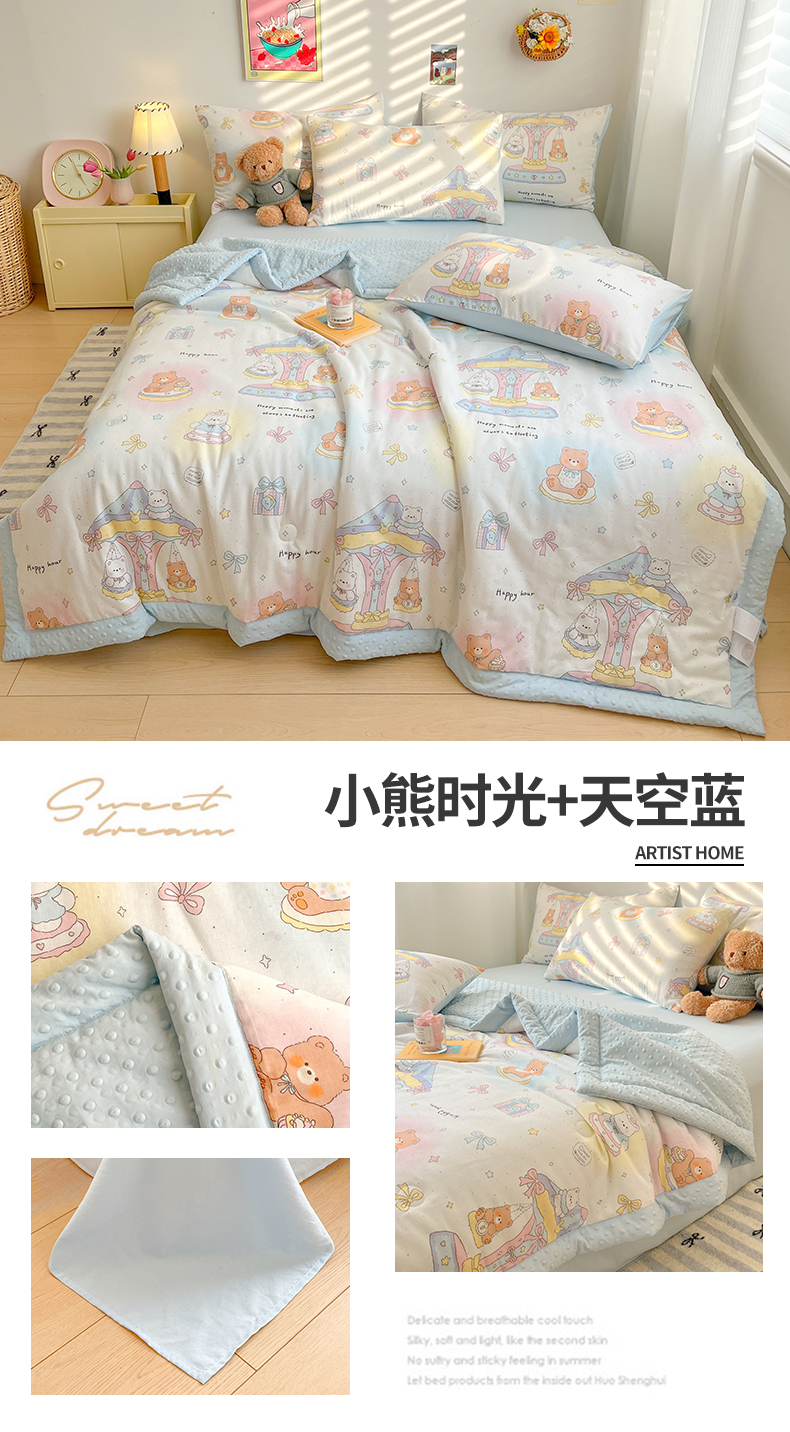 • 91家纺网 家纺一手货源 找家纺 盛秋家纺 2026新款A类水洗棉豆豆夏被系列二 狗狗游园+天空蓝
