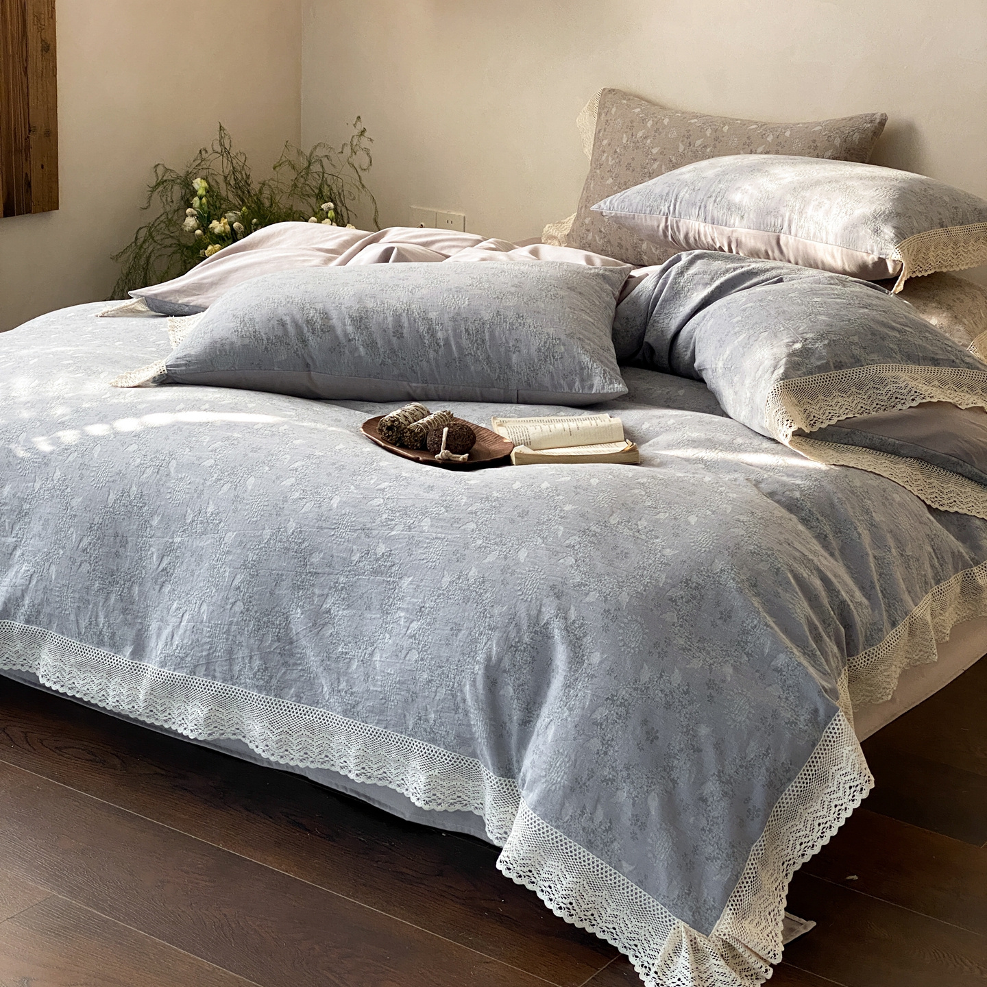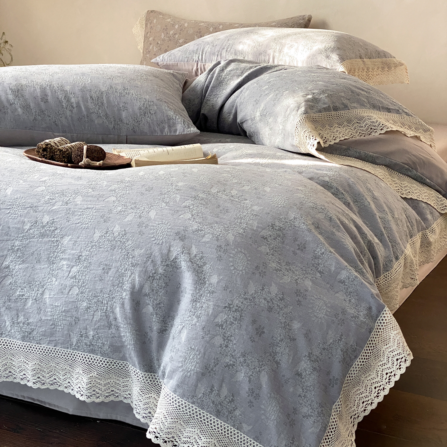 商品名称:(总)赫帛 2026新款全棉纯棉色织提花水洗棉四件套-叶岚