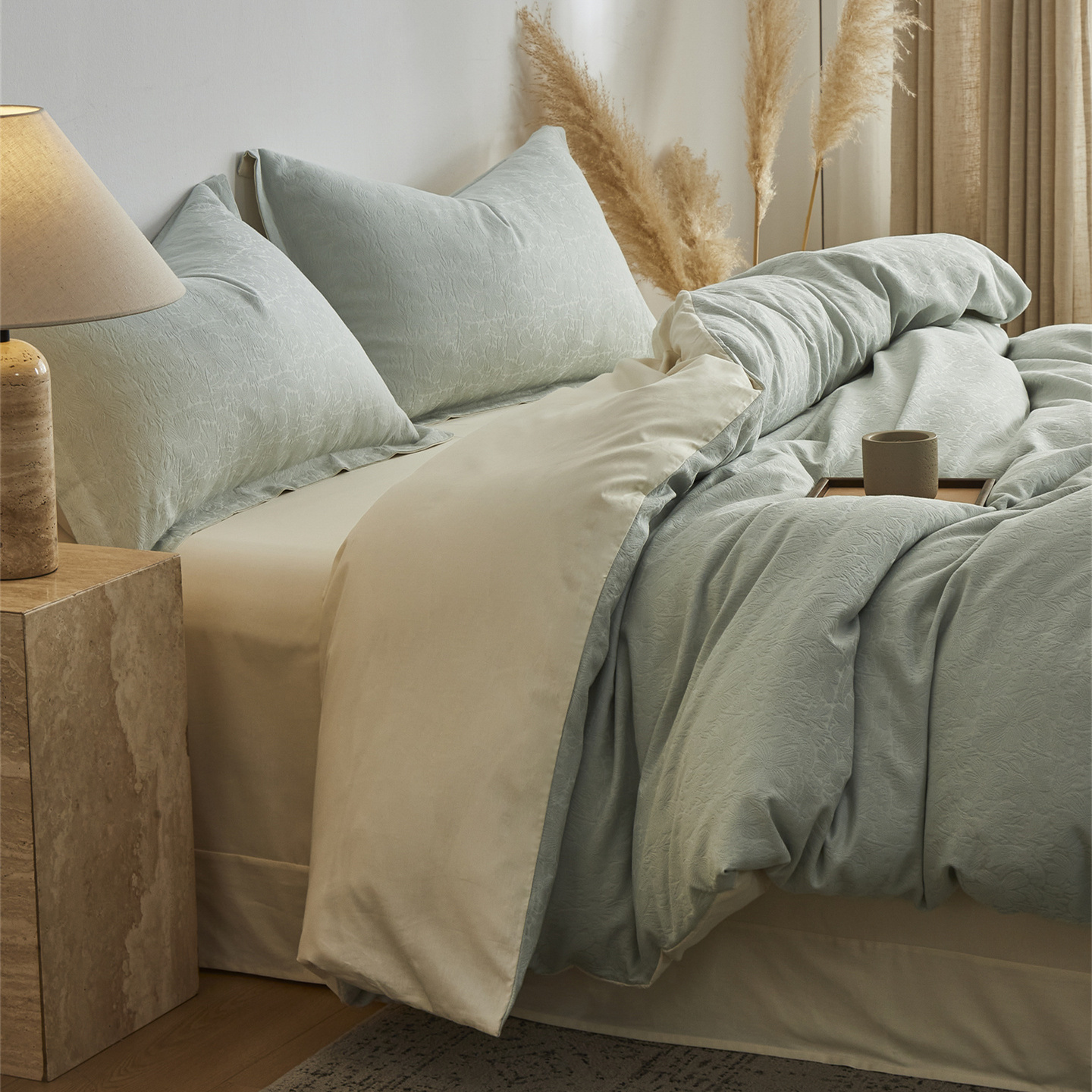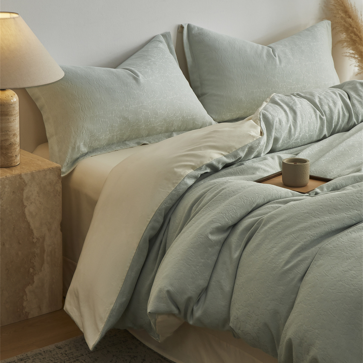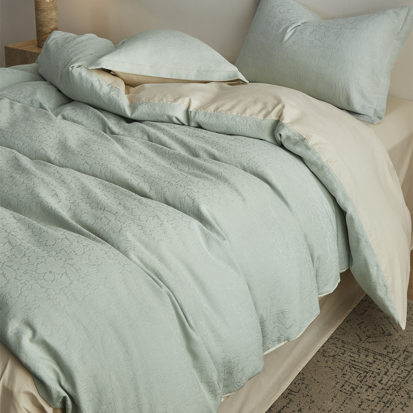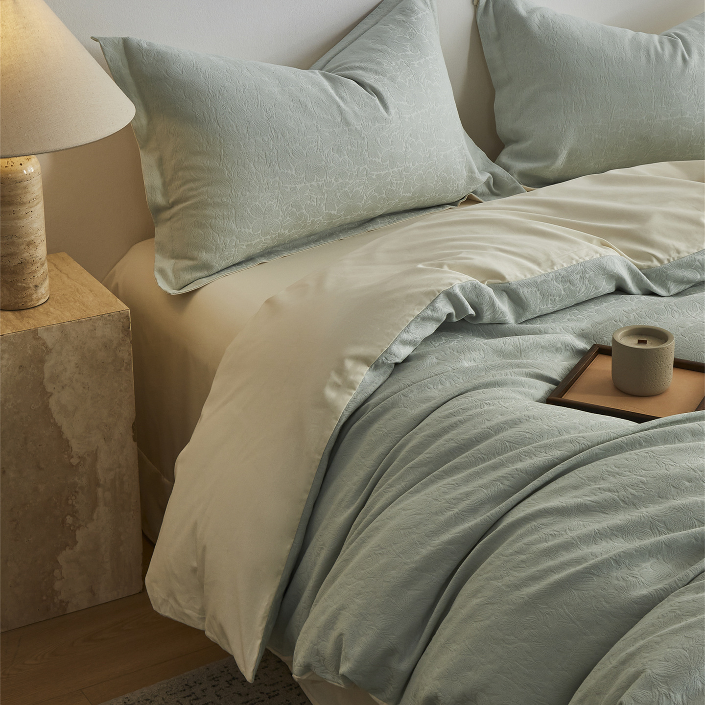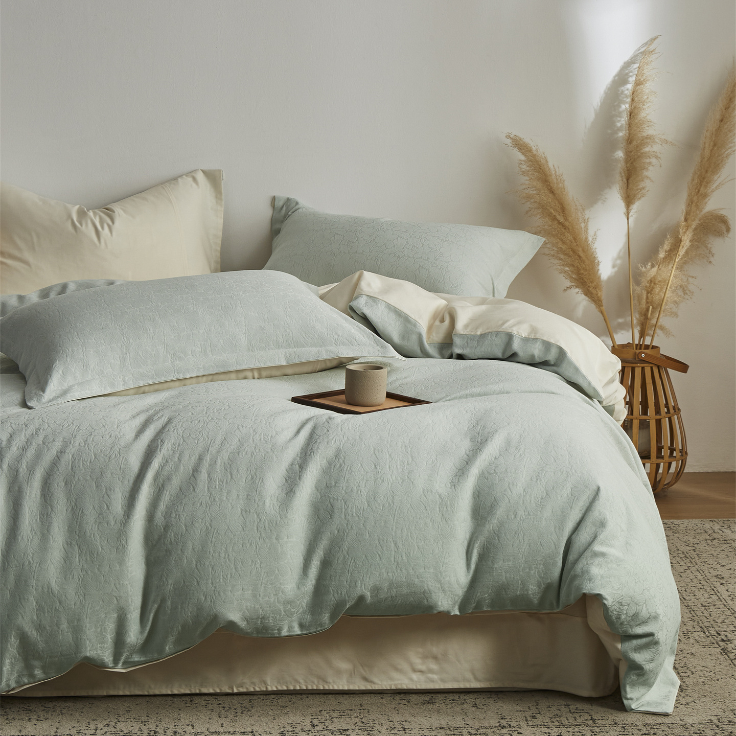 商品名称:顾家家居 2026新款AB面全棉厚织提花四件套 沄芷-明绿