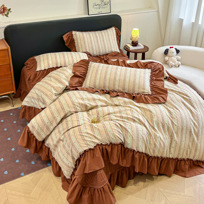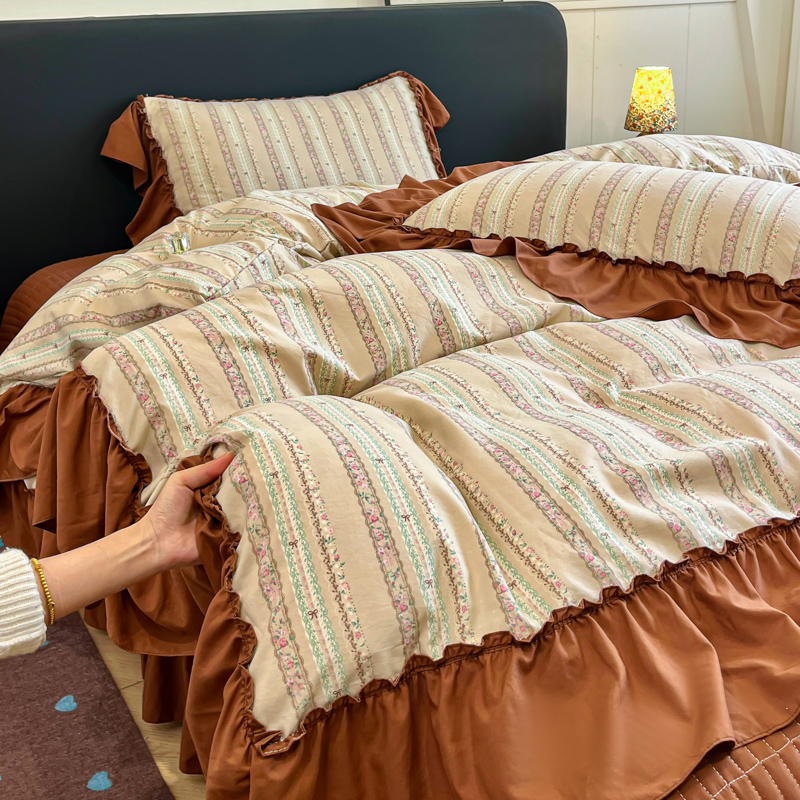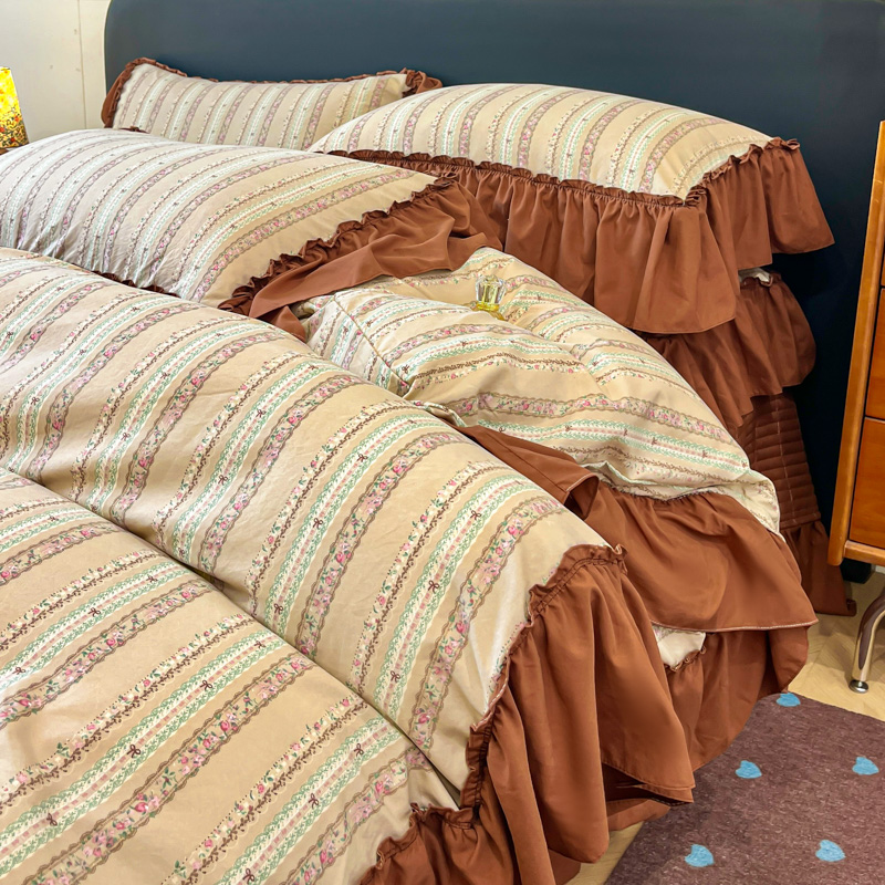 梦可莱家居 2026春夏新品法式复古大花边清新复古卡通系列床盖四件套 幸福美满