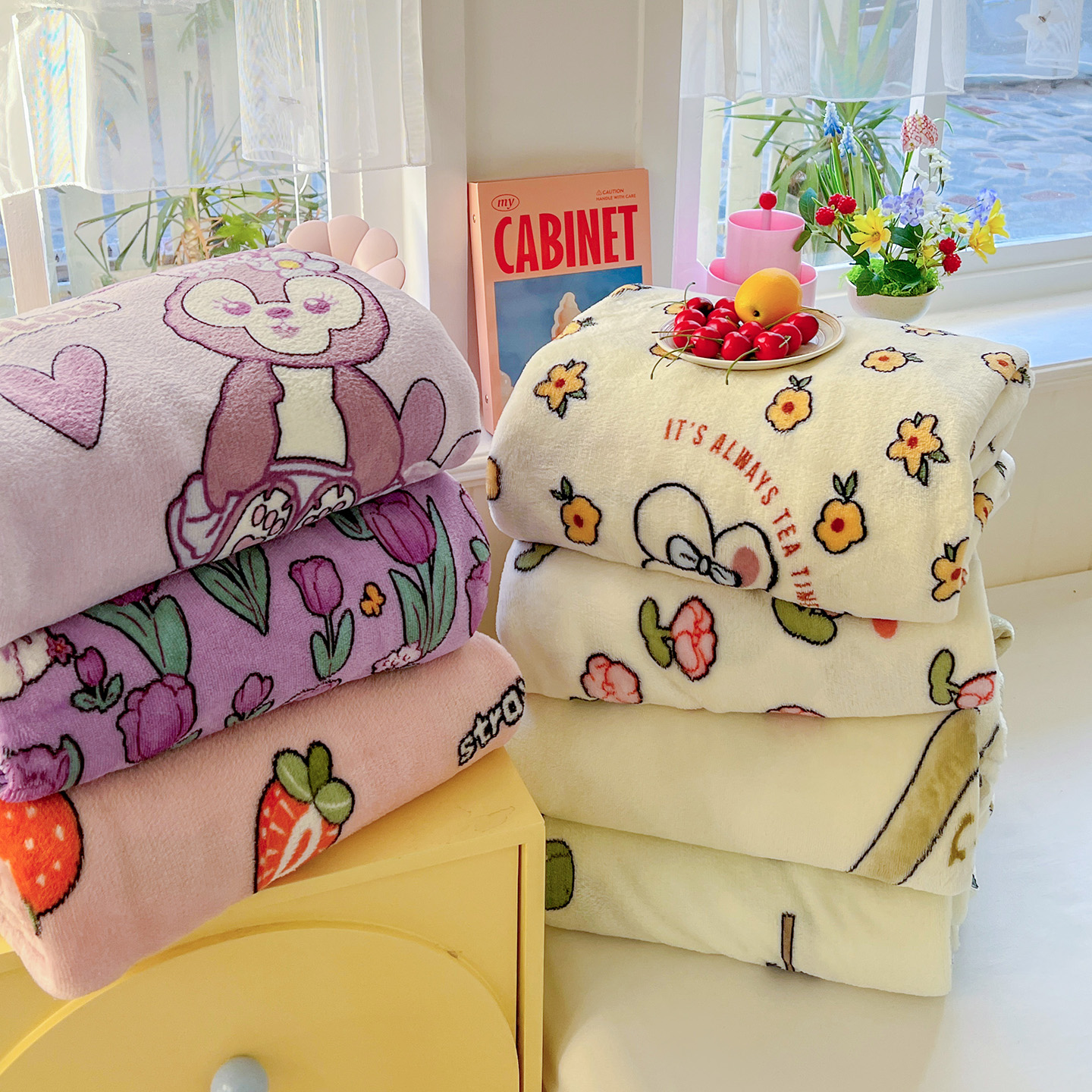 (总)悦织湾家纺 2026新款印花法兰绒毛毯牛奶绒盖毯春秋空调毯儿童床单小被子,爱心熊,丛林,花花世界,恐龙宝贝,奶油草莓,田园兔,甜蜜,幸运兔,英伦熊,郁金香,组合图