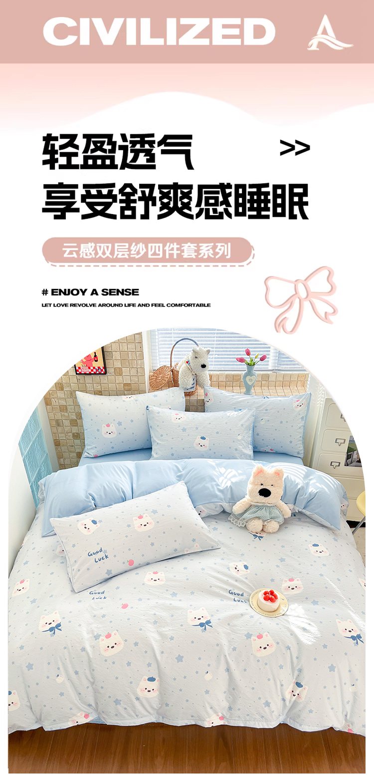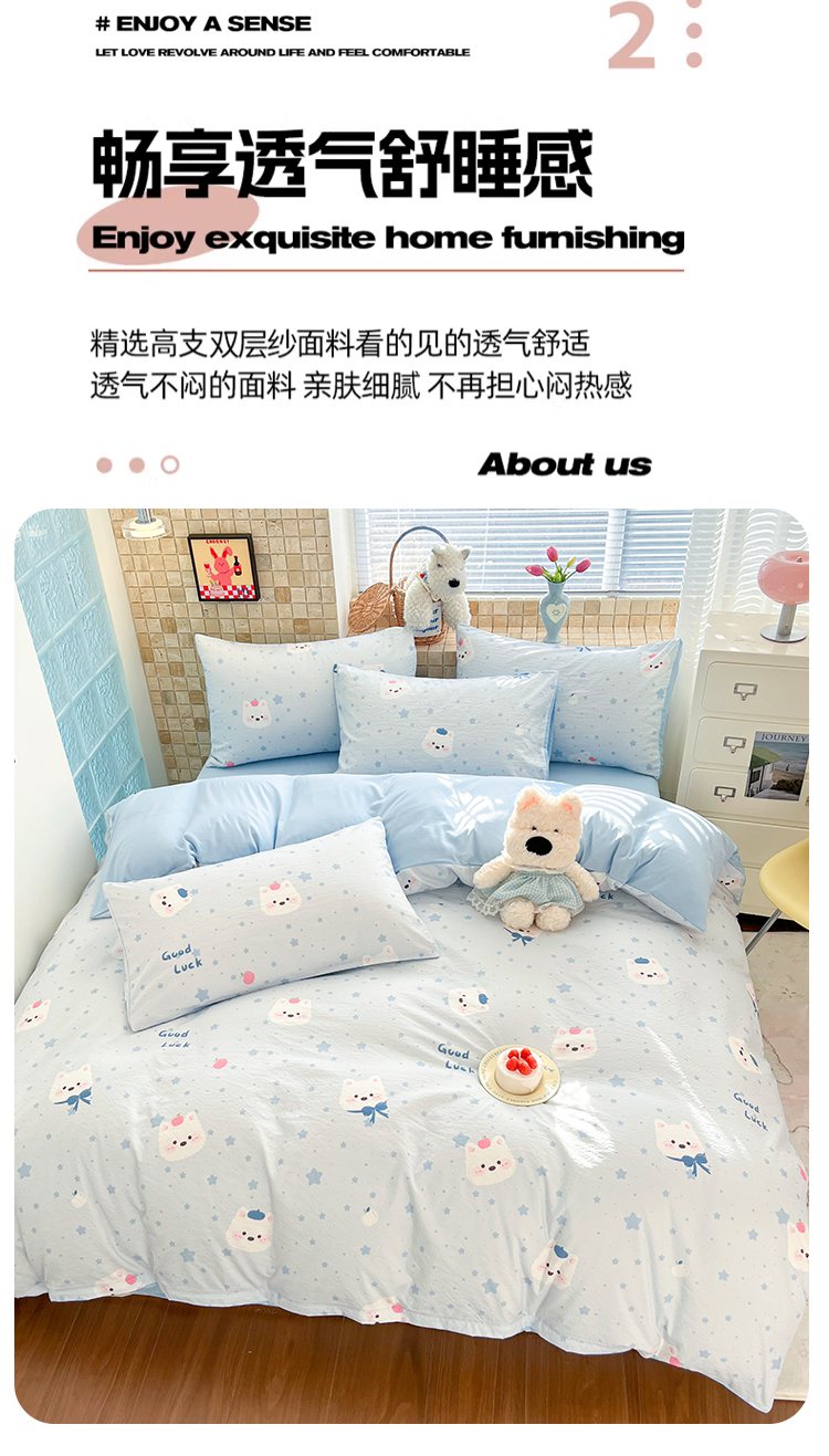 当前位置: 91家纺网 > 商品网购 > 床品套件 > 四件套 > 双层纱四件套 > 川悦生活 2026新款云感双层纱木棉四件套 星星西高地