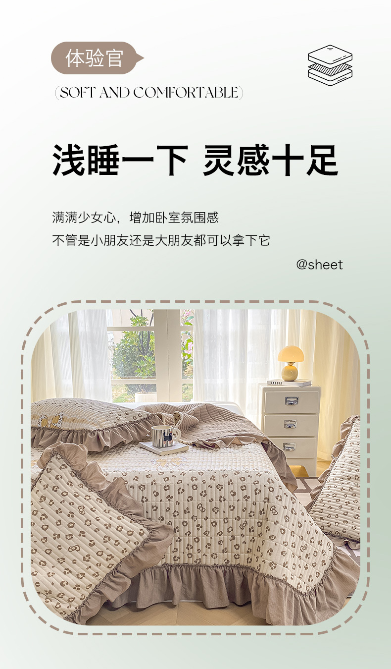 当前位置: 91家纺网 > 商品网购 > 床上用品 > 床盖 > 眠势力 2026新款双层纱加厚夹棉云感皱皱纱大花边床单床盖三件套四季通用 青樱兔语【皱皱纱花边床盖】