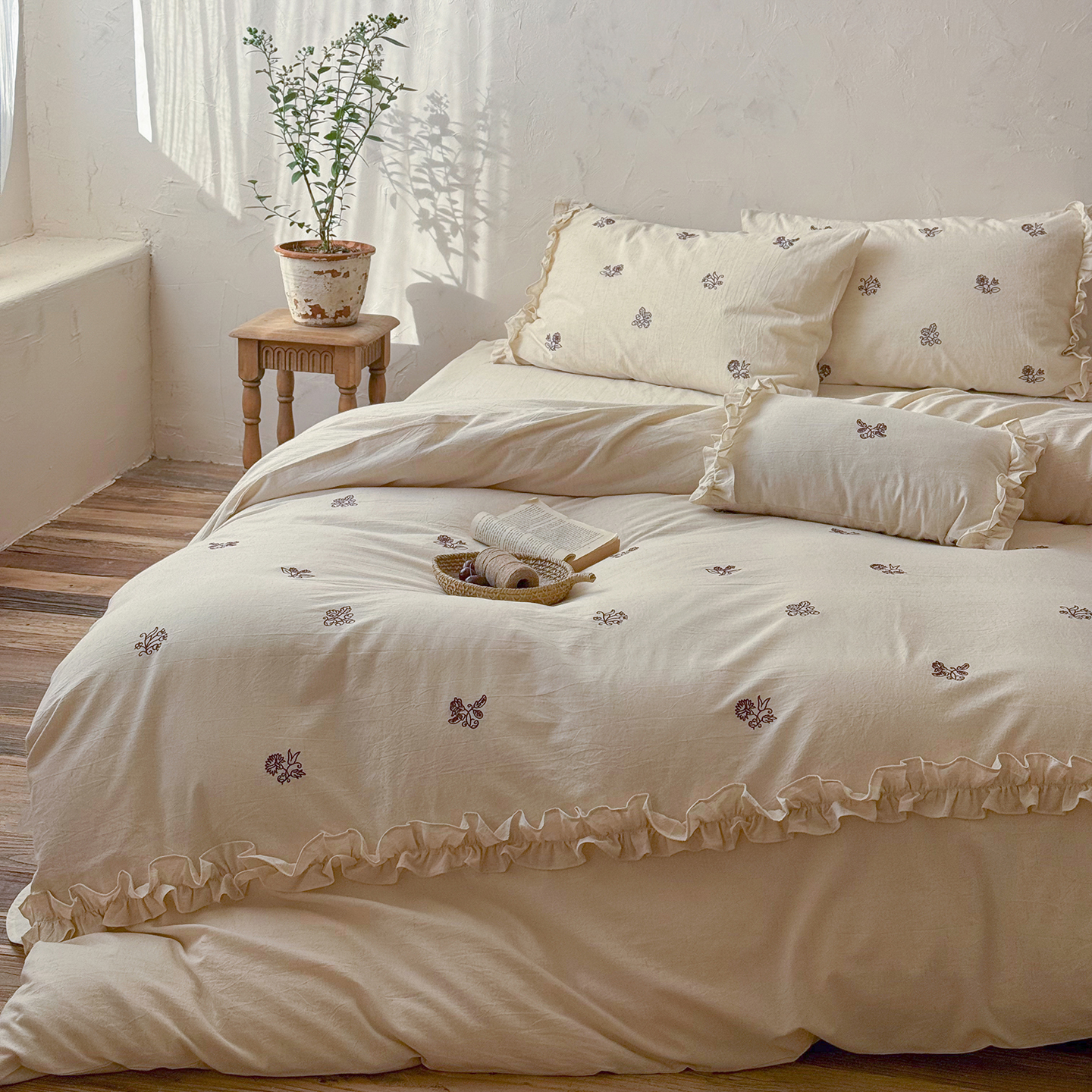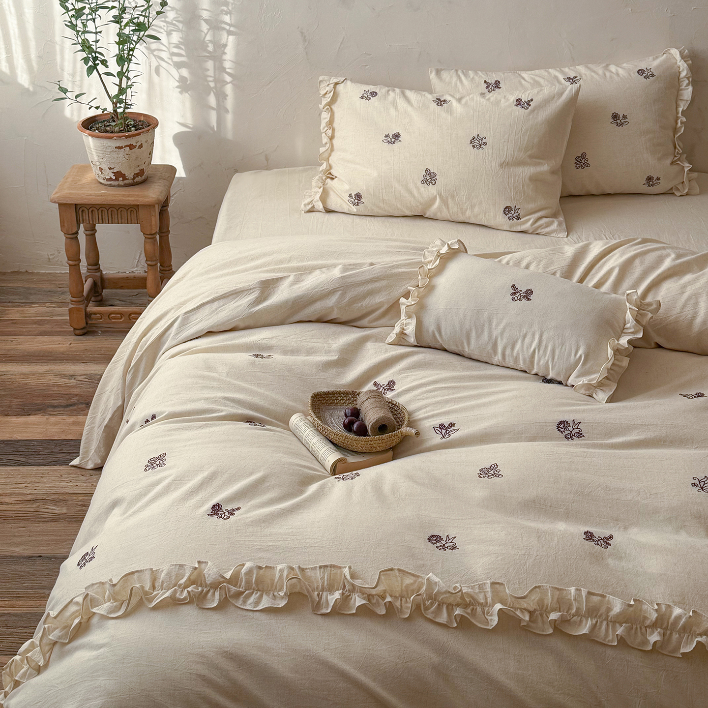 当前位置: 91家纺网 > 商品网购 > 床品套件 > 四件套 > 色织四件套 > (总)鹿班家居 2026春季新品色织棉麻精密刺绣系列四件套-归野(标准会员-20元)