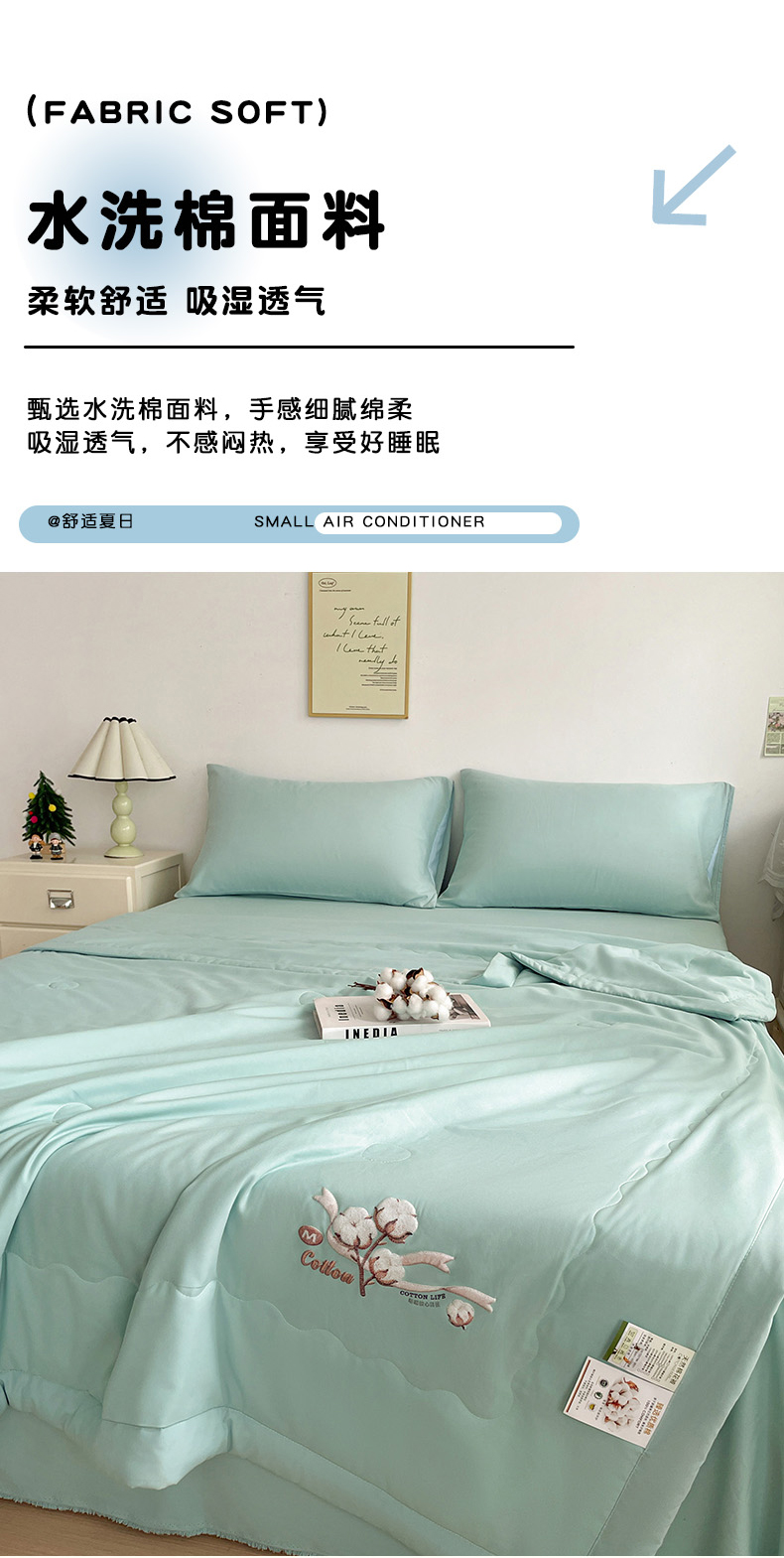 (总)易展家居 2025年新款水洗棉纯色夏被,薄荷绿,典雅白,高级灰,樱花粉