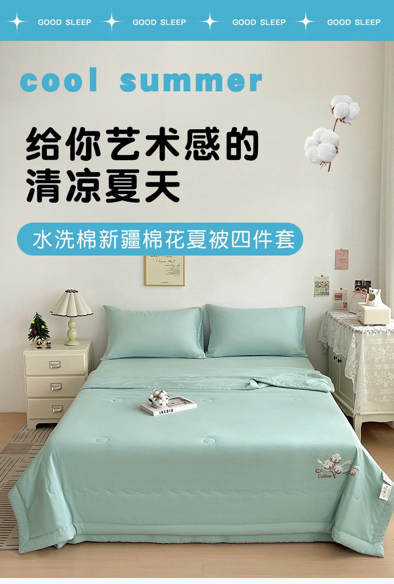 商品名称:易展家居 2026新款水洗棉新疆棉花夏被-棉花棉花+熊猫款 棉花-青色
