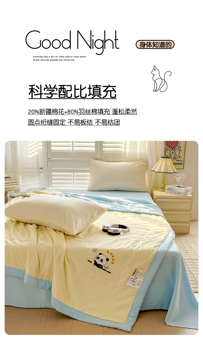 商品名称:易展家居 2026新款水洗棉新疆棉花夏被-棉花棉花+熊猫款 能猫-黄拼蓝