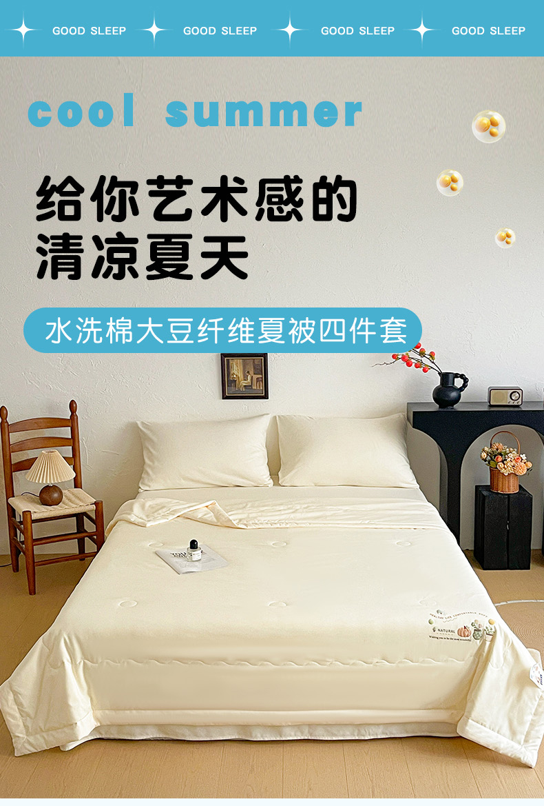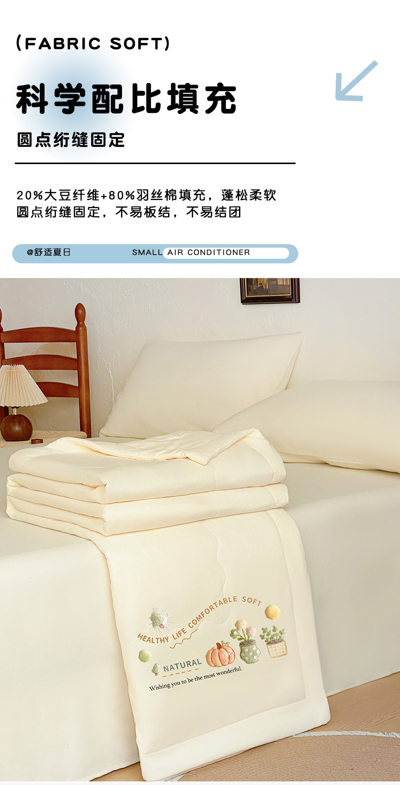 商品名称:易展家居 2026新款水洗棉大豆纤维夏被 田园生活-浅黄