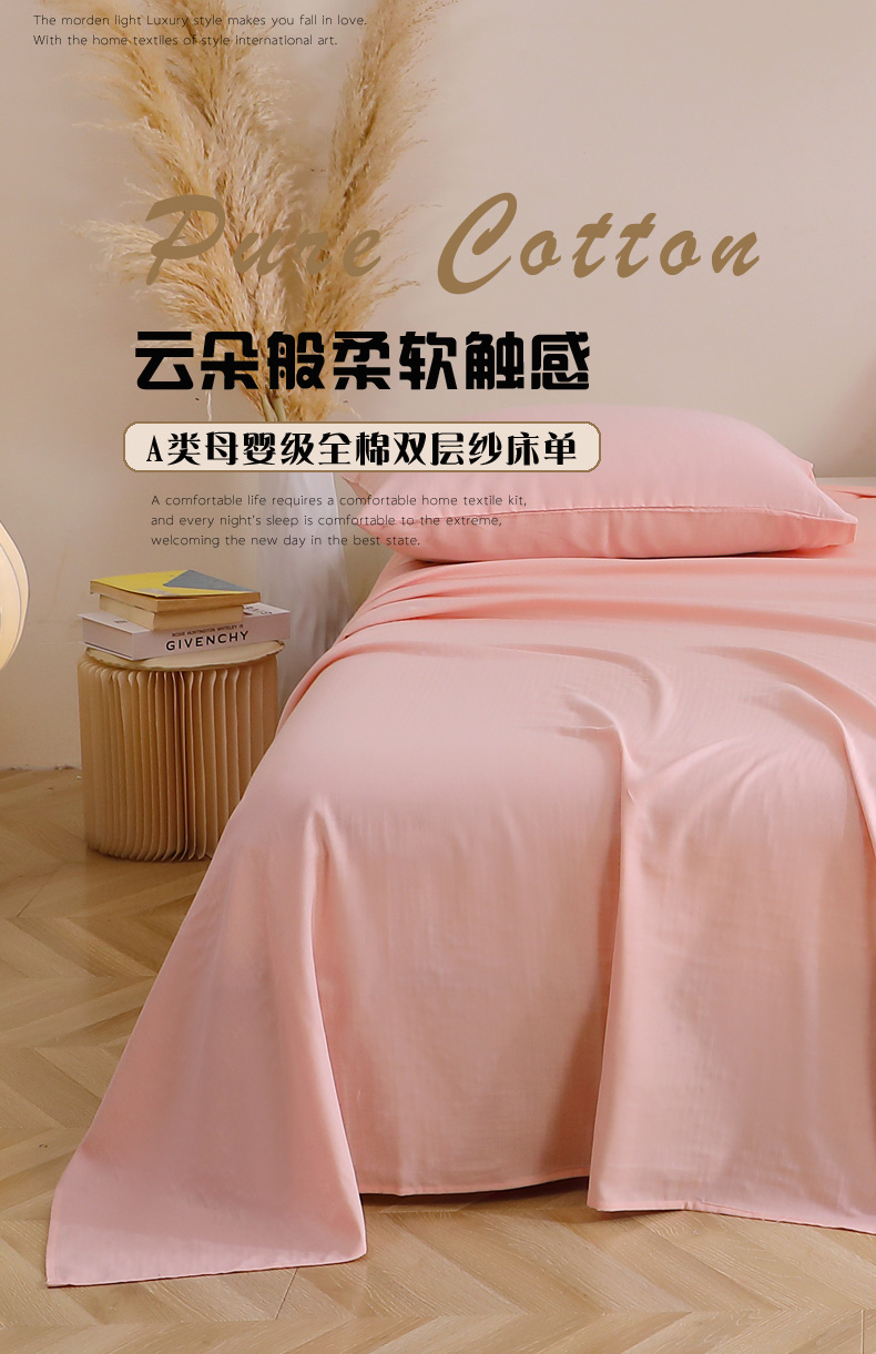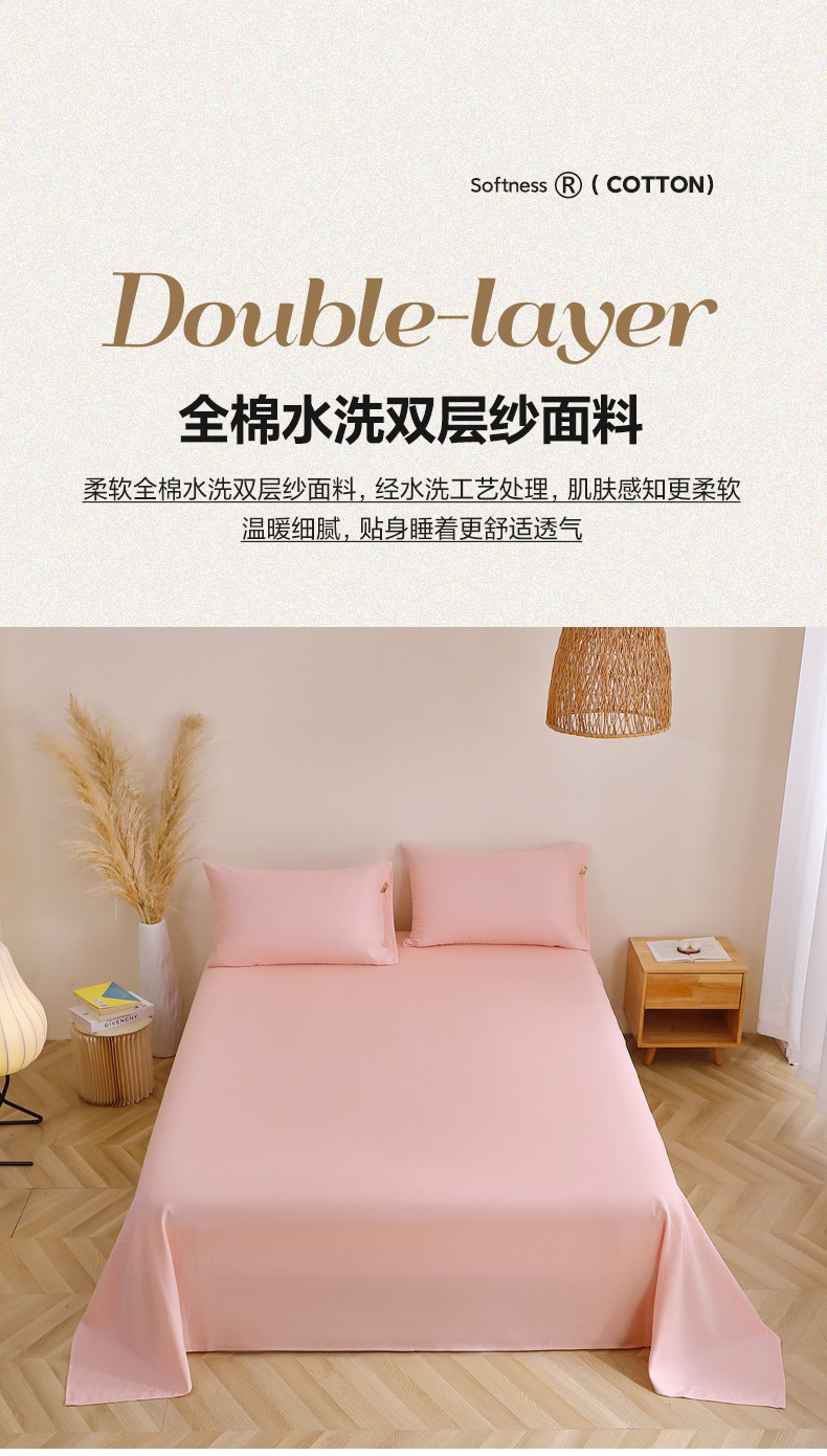 晶缦家纺 2026新款纯棉纯色A类全棉双层纱单品床单床单单件单床单(水洗预处理)-觅琳系列 觅琳-暮云粉