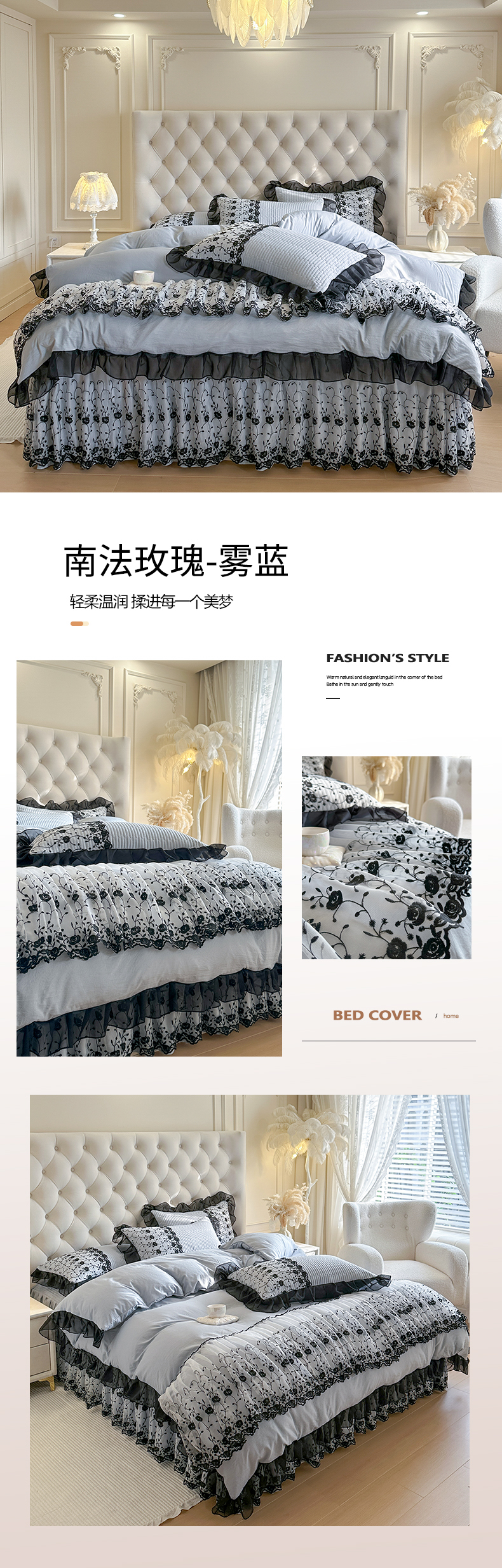 (总)瑞宝 2026新款泡芙棉花边床裙四件套-南法玫瑰