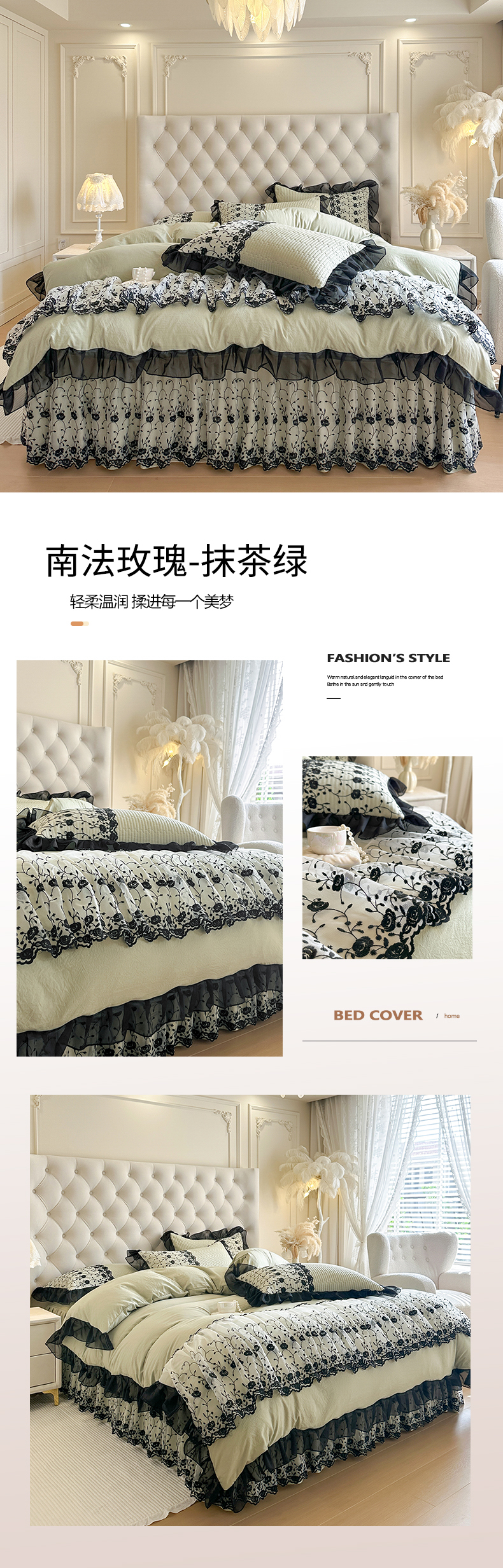 (总)瑞宝 2025新款雕花牛奶绒花边夹棉床盖四件套-莫妮卡,奶昔白,抹茶绿,奶茶咖,少女粉,雾蓝