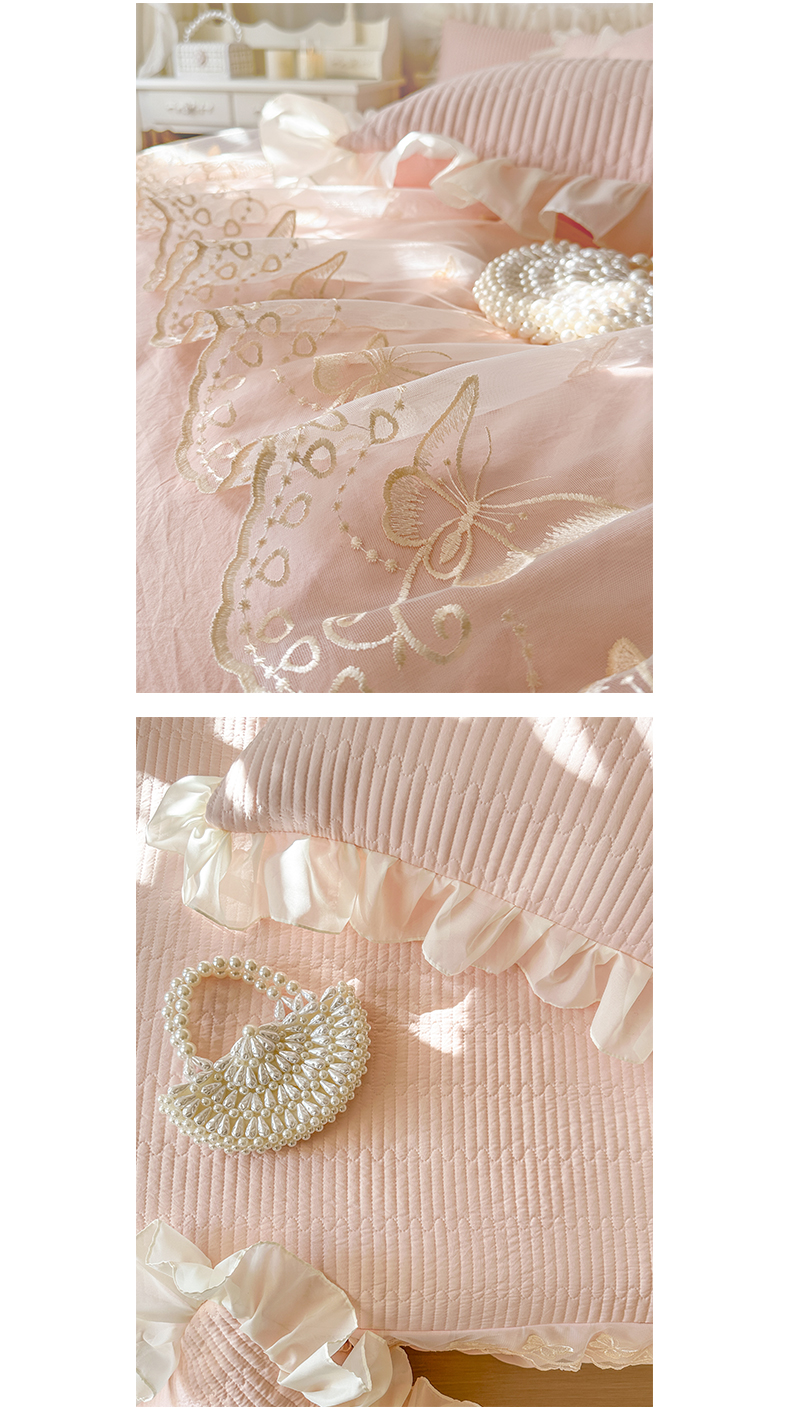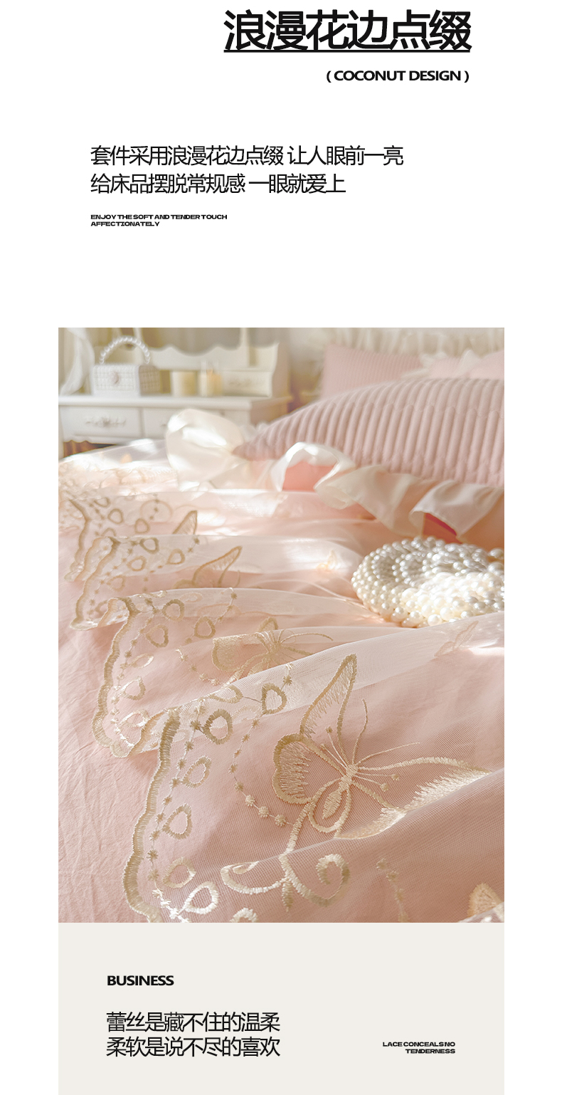 (总)瑞宝 2025新款法式花边全棉贡缎提花床裙款四件套-梦之语(控价265起),梦之语-蜜粉,梦之语-奶油白,梦之语-青柠绿,梦之语-香芋紫