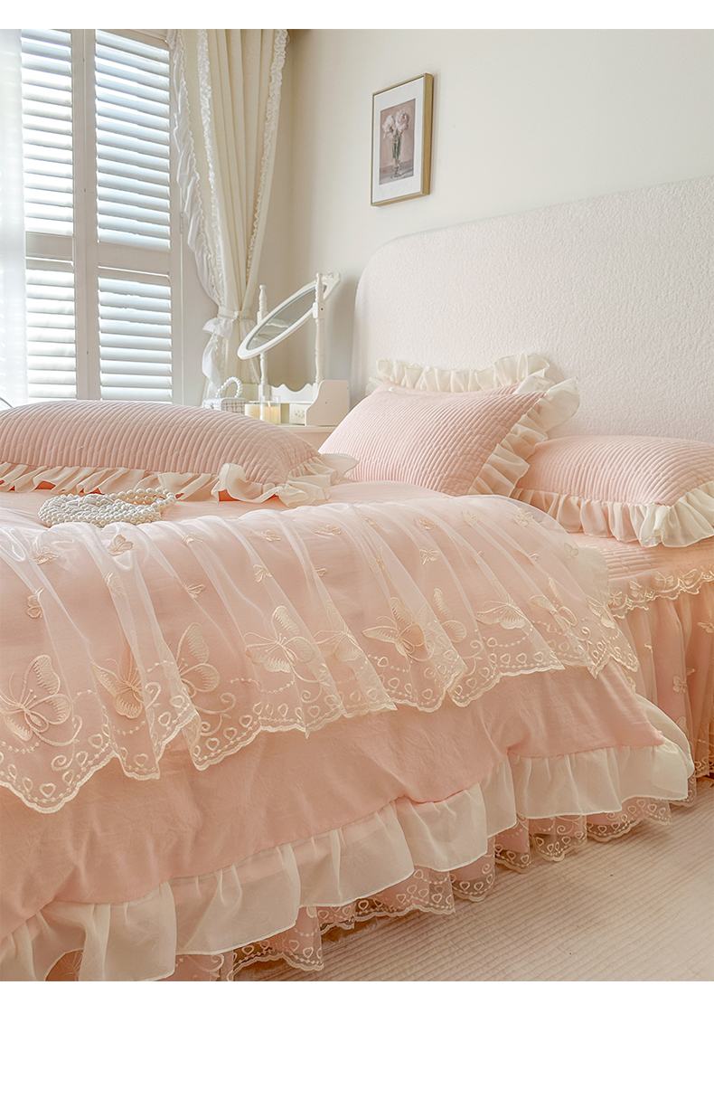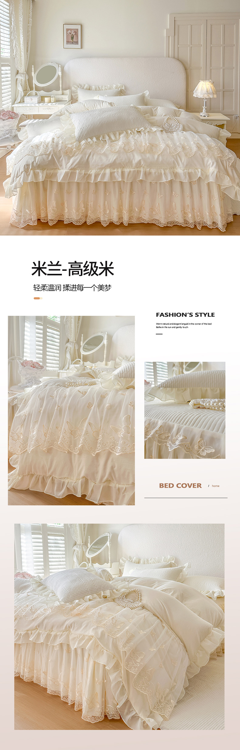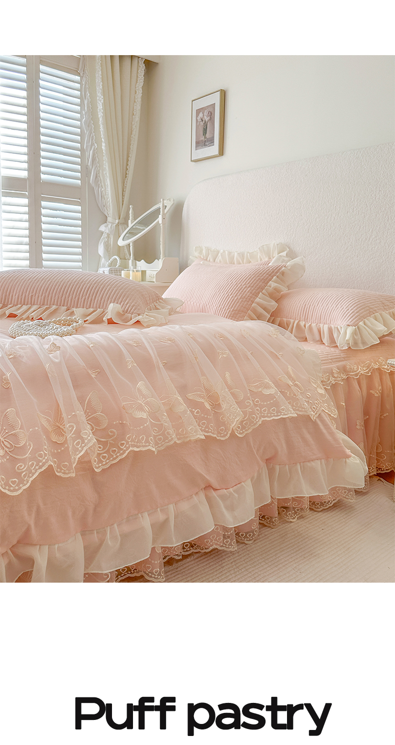 商品名称:瑞宝 2026新款泡芙棉花边床裙四件套-米兰系列 米兰-玉色