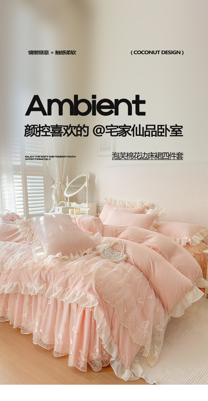 (总)瑞宝 2026新款泡芙棉花边床裙三件套-栀子海,栀子海-茶绿,栀子海-高级米,栀子海-粉樱,栀子海-奶咖,栀子海-柔白,栀子海-天蓝,栀子海-玉色,栀子海-紫色
