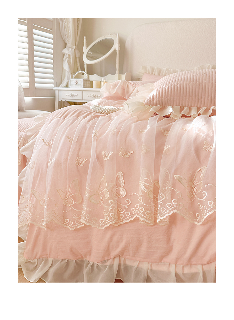 瑞宝 2026新款泡芙棉花边床裙四件套-米兰系列 米兰-玉色