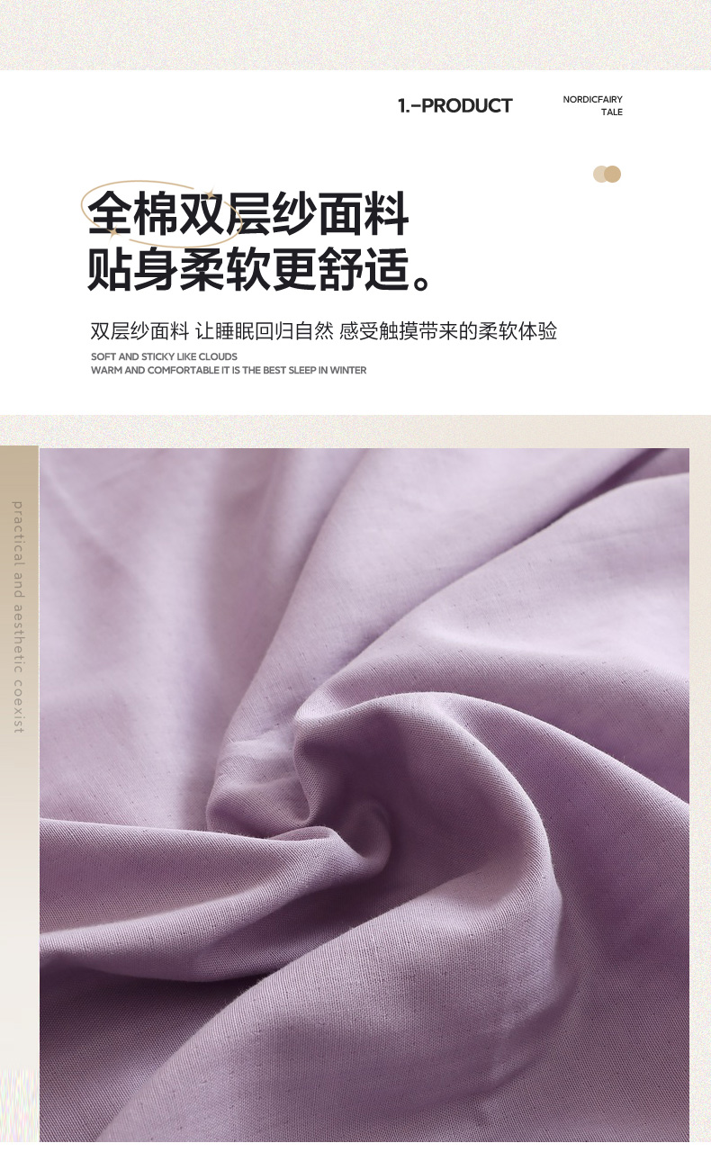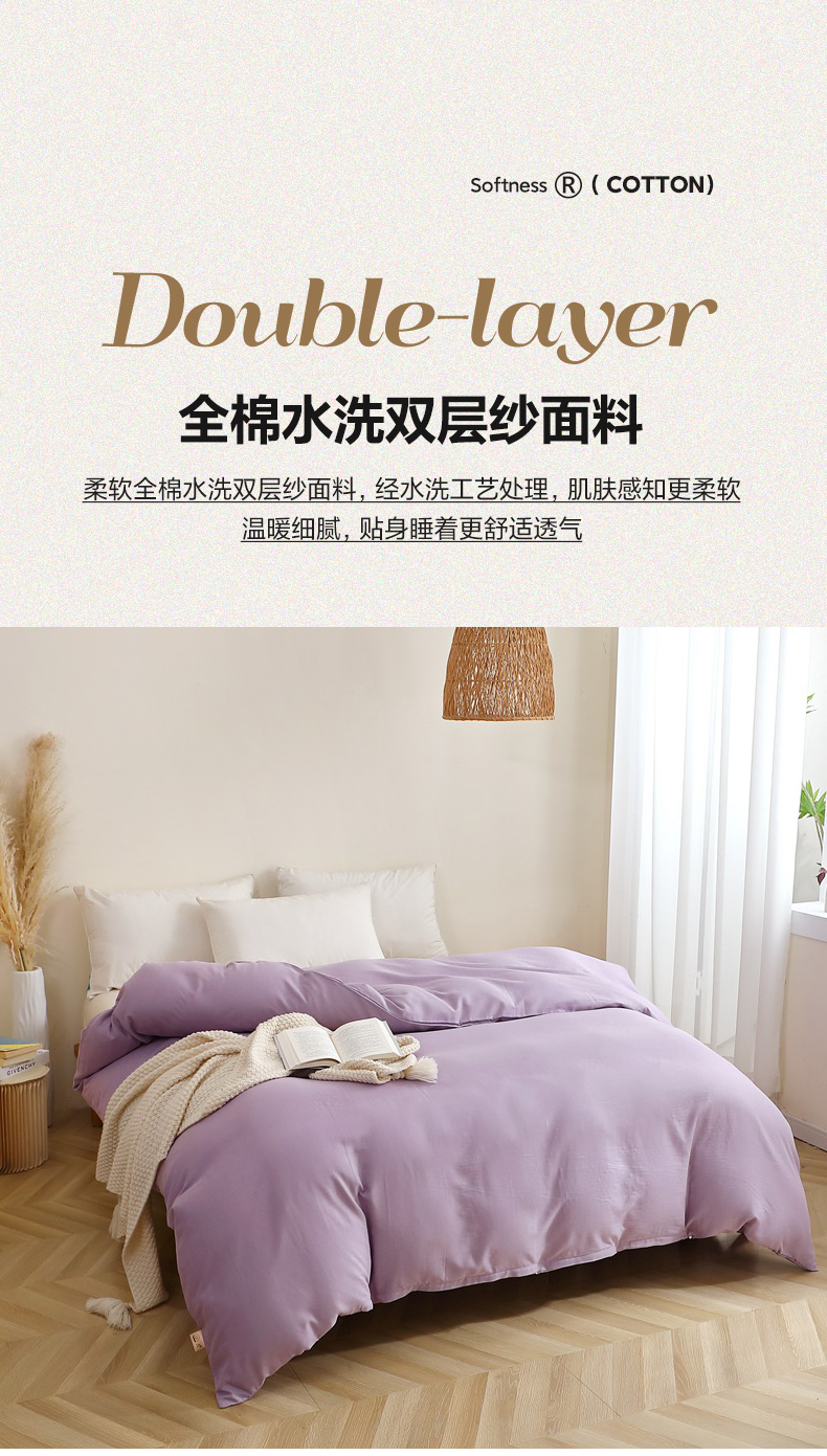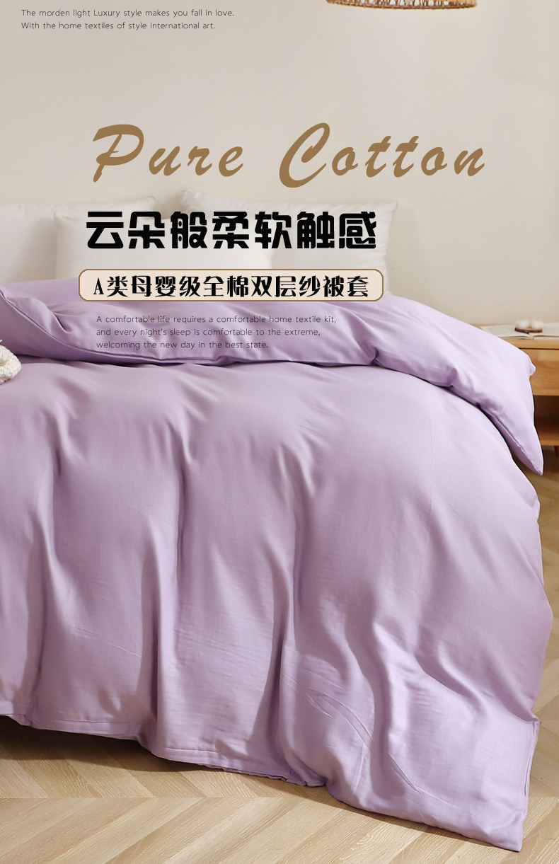 • 91家纺网 家纺一手货源 找家纺 晶缦家纺 2026新款纯棉纯色A类全棉双层纱单品被套被套单件单被套(水洗预处理)-觅琳系列 觅琳-木槿紫