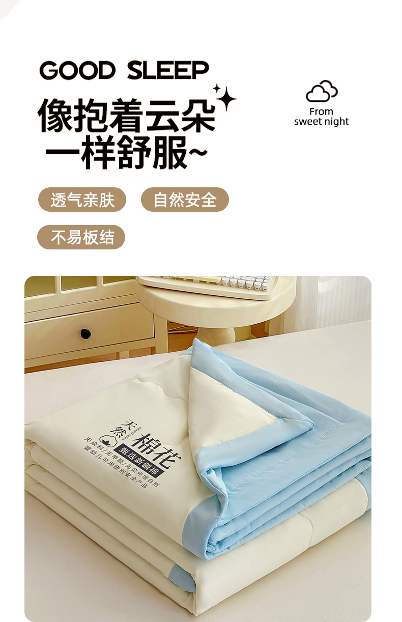 易展家居 2026新款水洗棉新疆棉花夏被-棉花2 棉花-白拼蓝