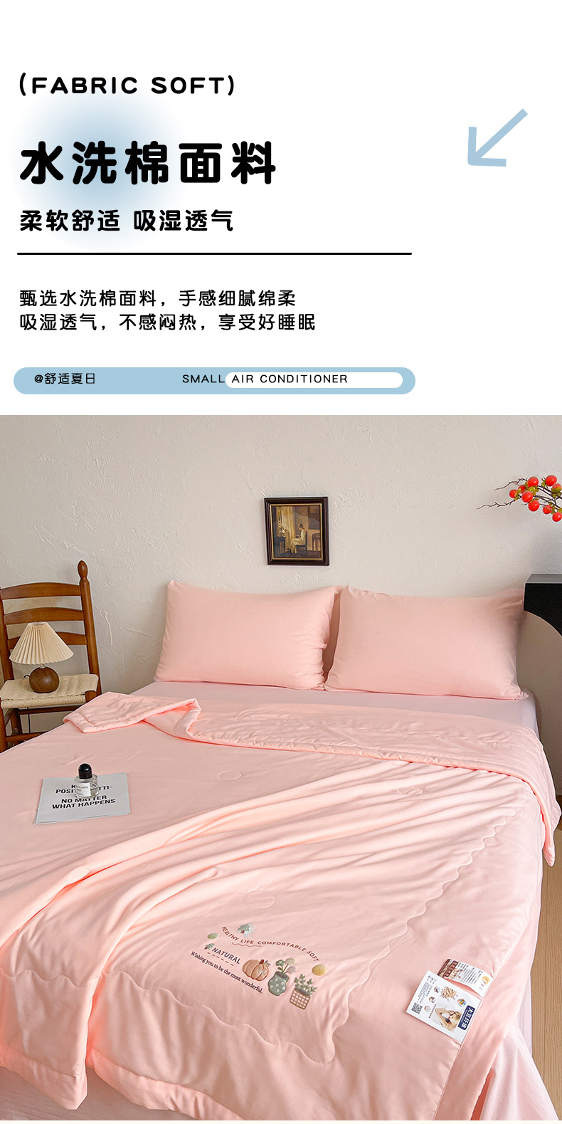 (总)易展家居 2025年新款水洗棉纯色夏被,薄荷绿,典雅白,高级灰,樱花粉