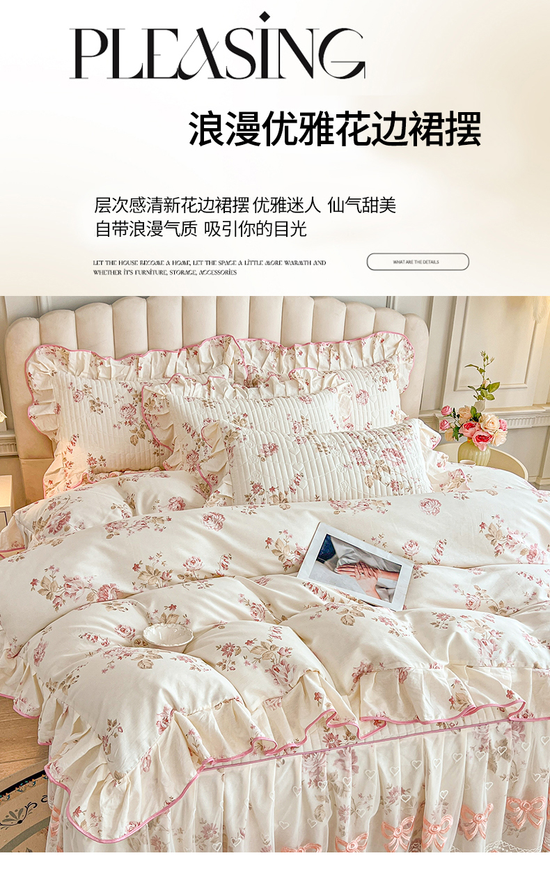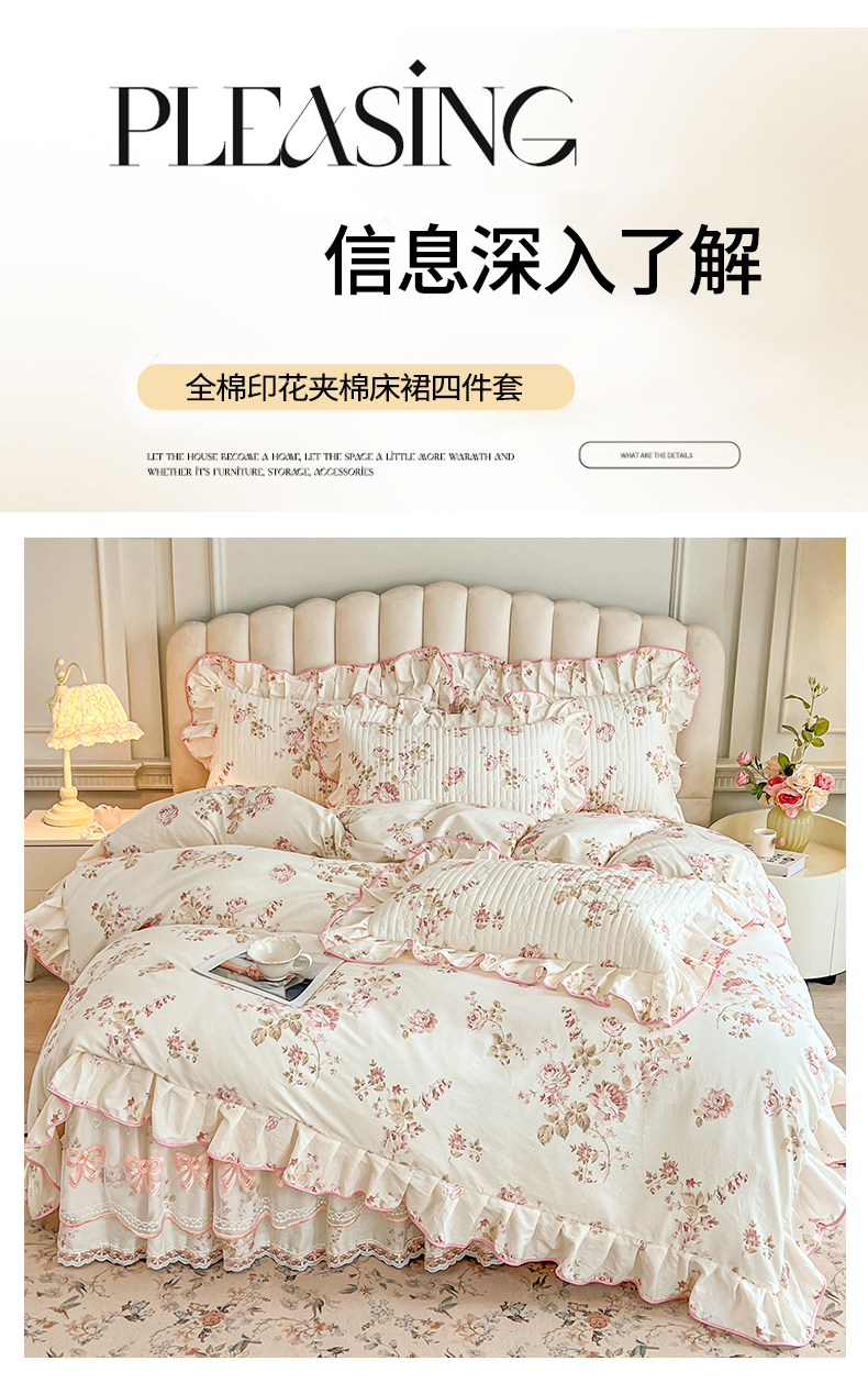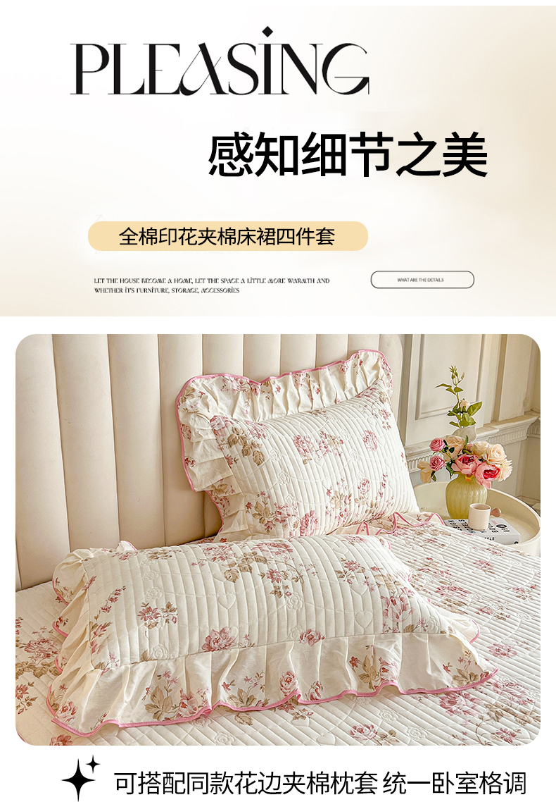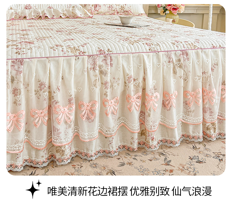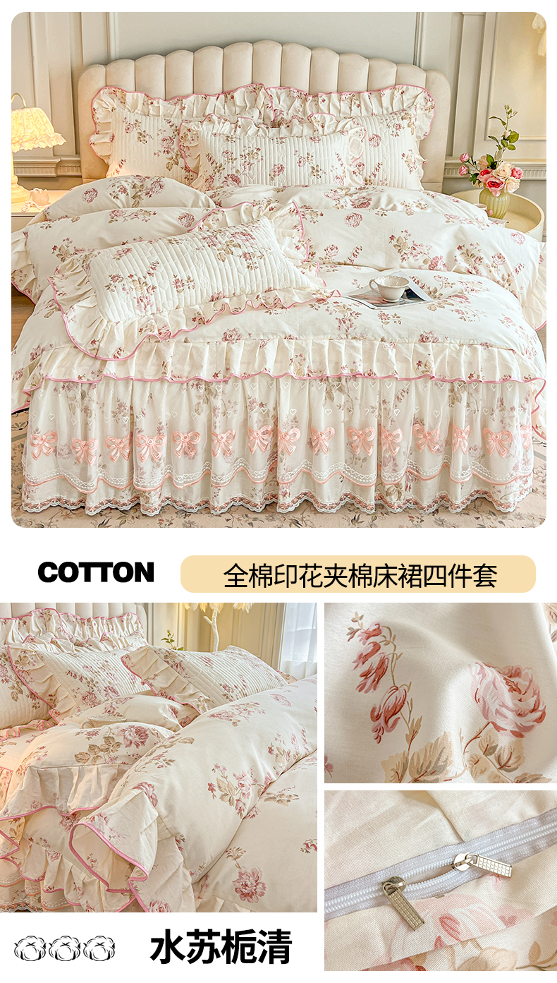 当前位置: 91家纺网 > 商品网购 > 床品套件 > 四件套 > 全棉普通四件套 > 宜凡家纺 2026新款全棉公主风夹棉床裙四件套 水苏栀清
