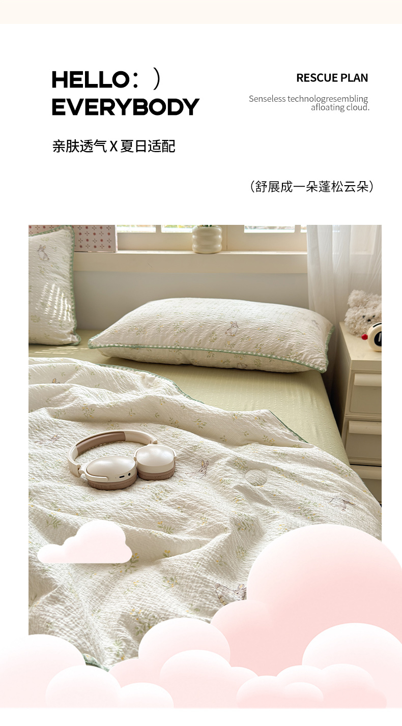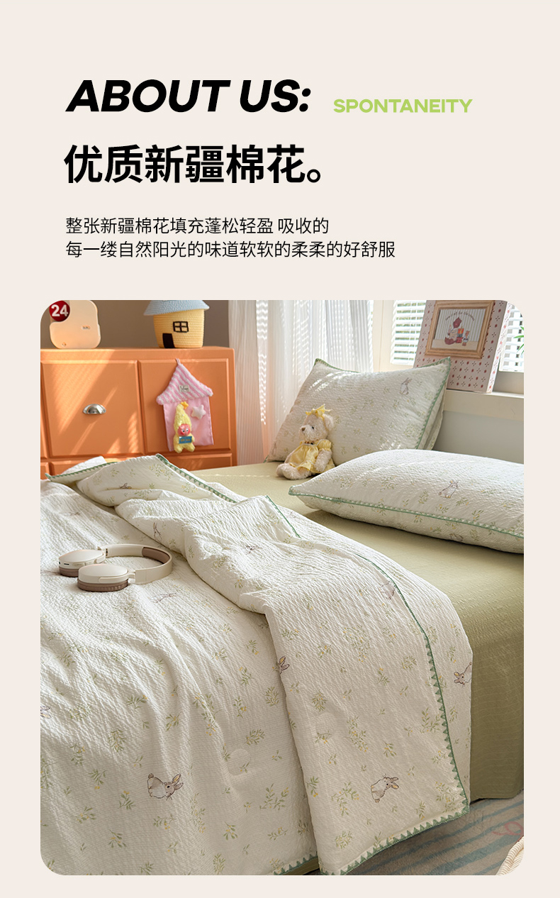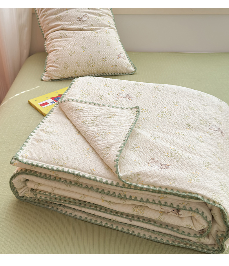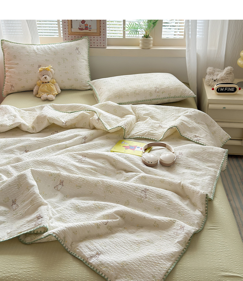 商品名称:暖阳 2026新款100%棉花泡芙棉贝壳夏被被子被芯 绿野小兔