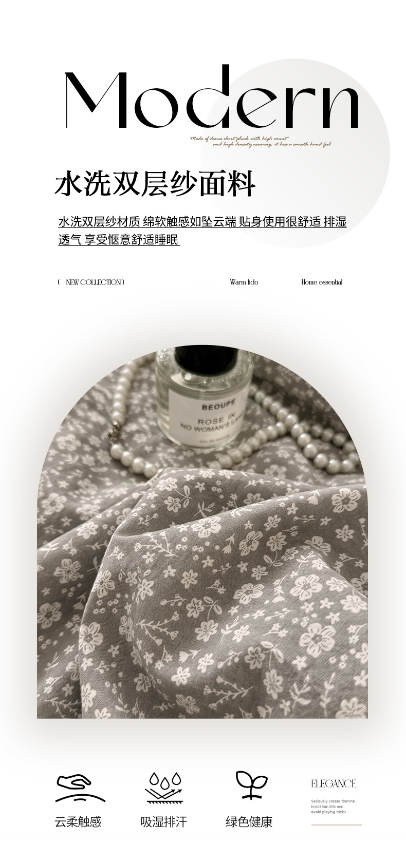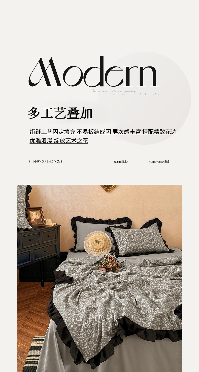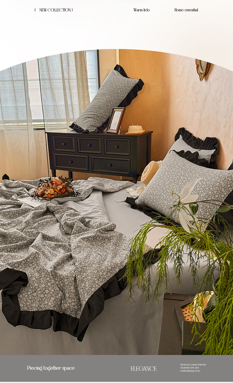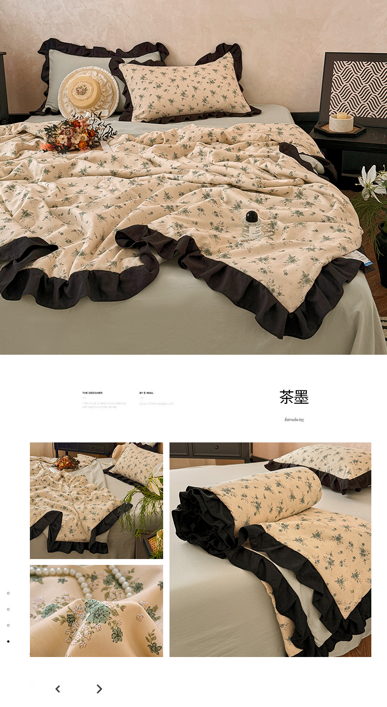 亿品家纺 2026直播爆款韩版赫本风花边款水洗双层纱夏被四件套【有买家秀加V】,茶墨,朵颜,蔷薇岛,山茶左岸,山奈,幸运,虞美人,组合图仅供展示