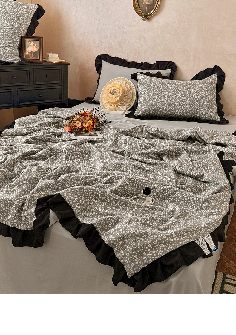 2026直播爆款韩版赫本风花边款水洗双层纱夏被四件套【有买家秀加V】朵颜